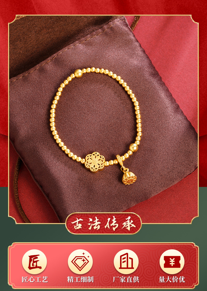 Vietnam Shajin herencia de flores huecas de loto pulsera de perlas de loto estilo nacional de mujer versátil Yiwu joyería fuente al por mayor