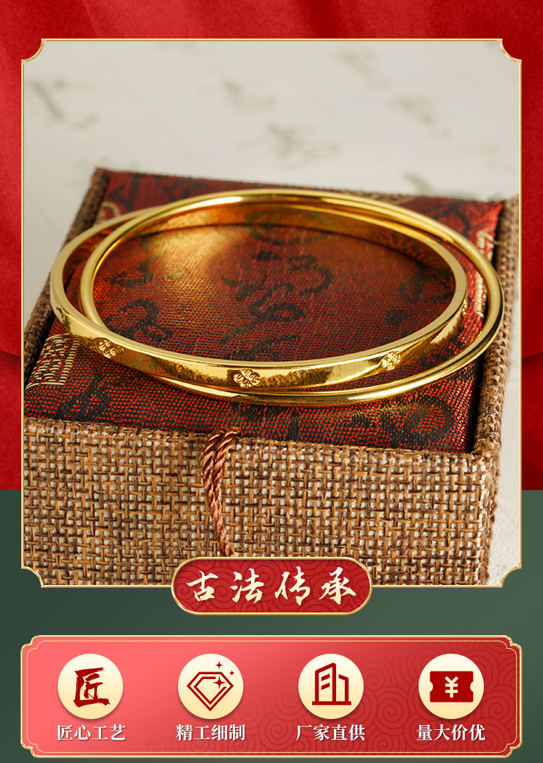 Brazalete de cuatro hojas de oro vietnamita de cinco flores de mujer doble anillo no se desvanece de alta calidad joyería de aleación de cobre brazalete de simulación