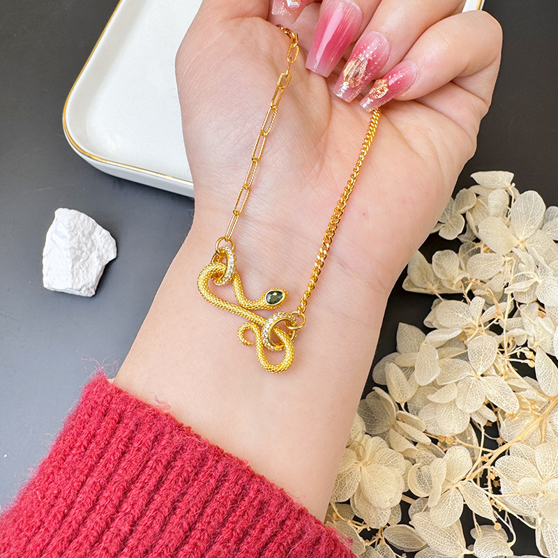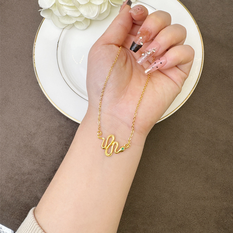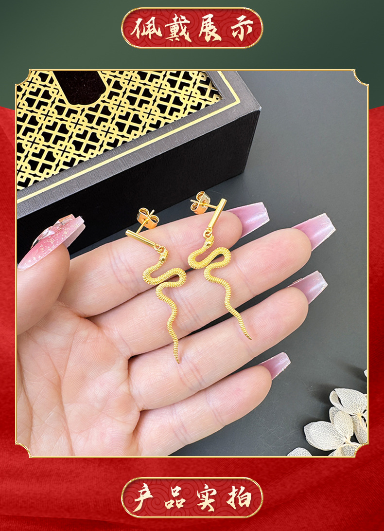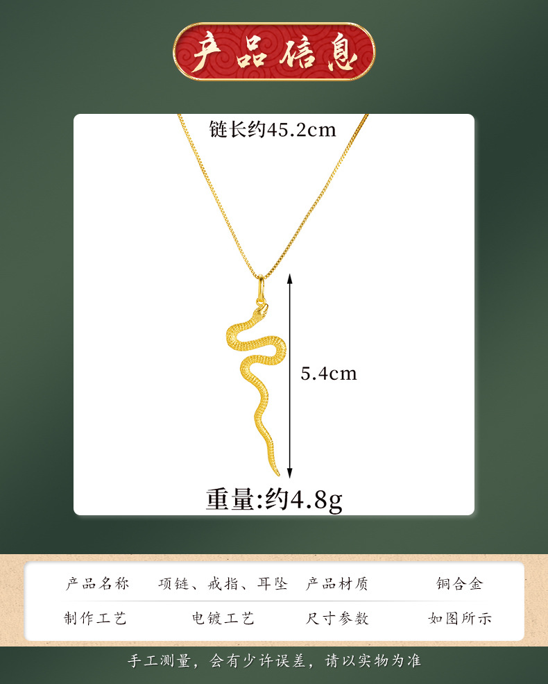 Gufa Sha Gold Zodiac Serpente Personalidad Joyas Collar pendientes de orejas Anillo de la mujer doblado Año de la Serpente Accesorios versátiles