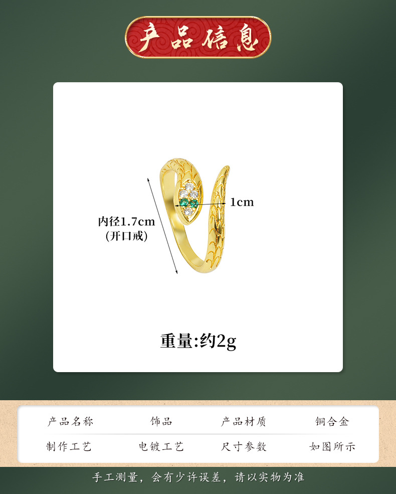 Nuevo anillo de oro de arena vietnamita, año de la serpiente, zodiaco, anillo abierto, joyas no se desvanecen.