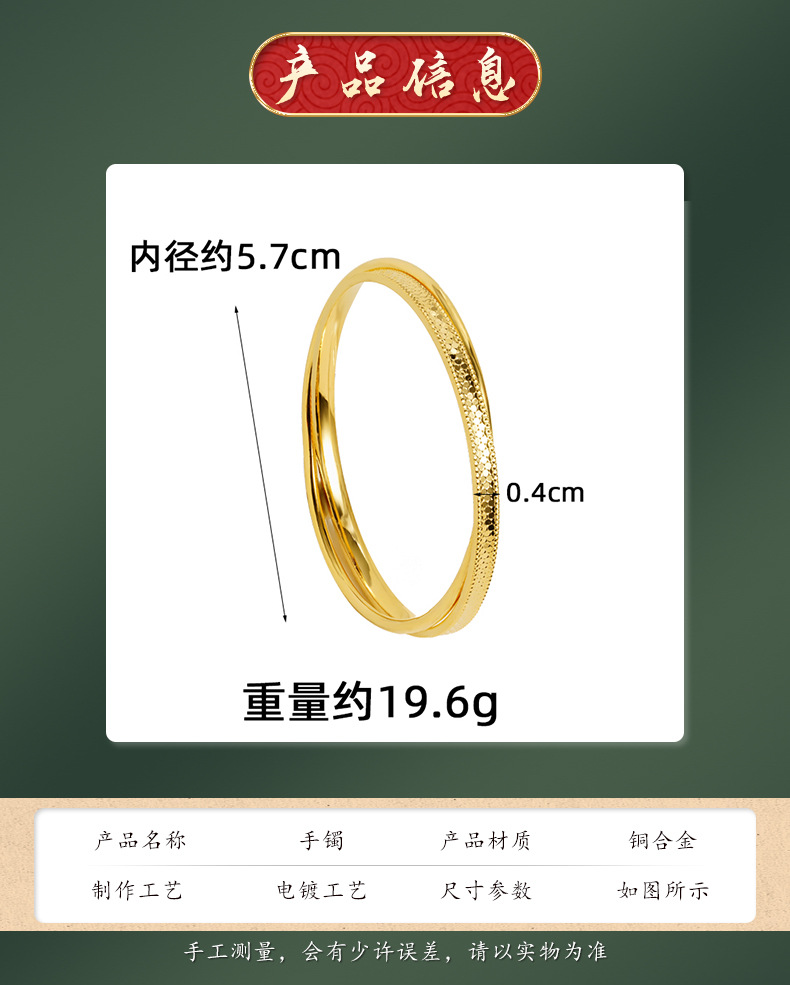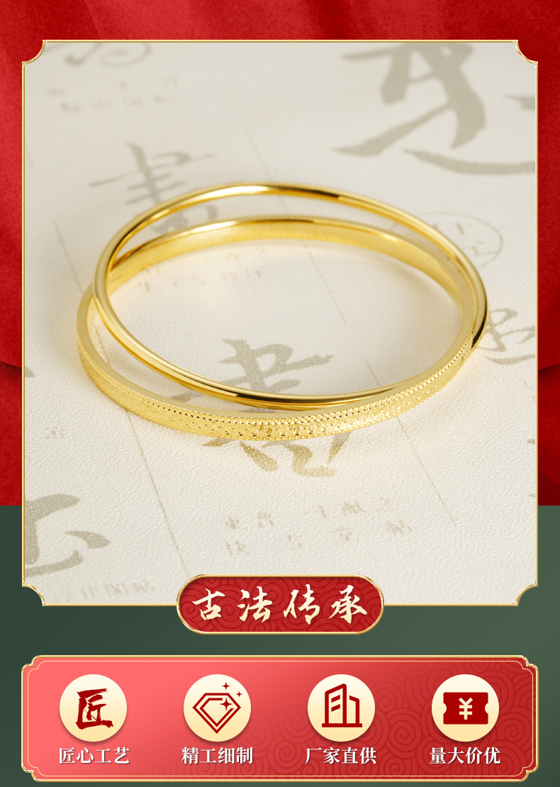 Vietnam Sha Jin no se desvanece durante mucho tiempo, el patrón de escamas de pescado antiguo de doble anillo cerrado pulsera de joyería de alta calidad para mujeres.