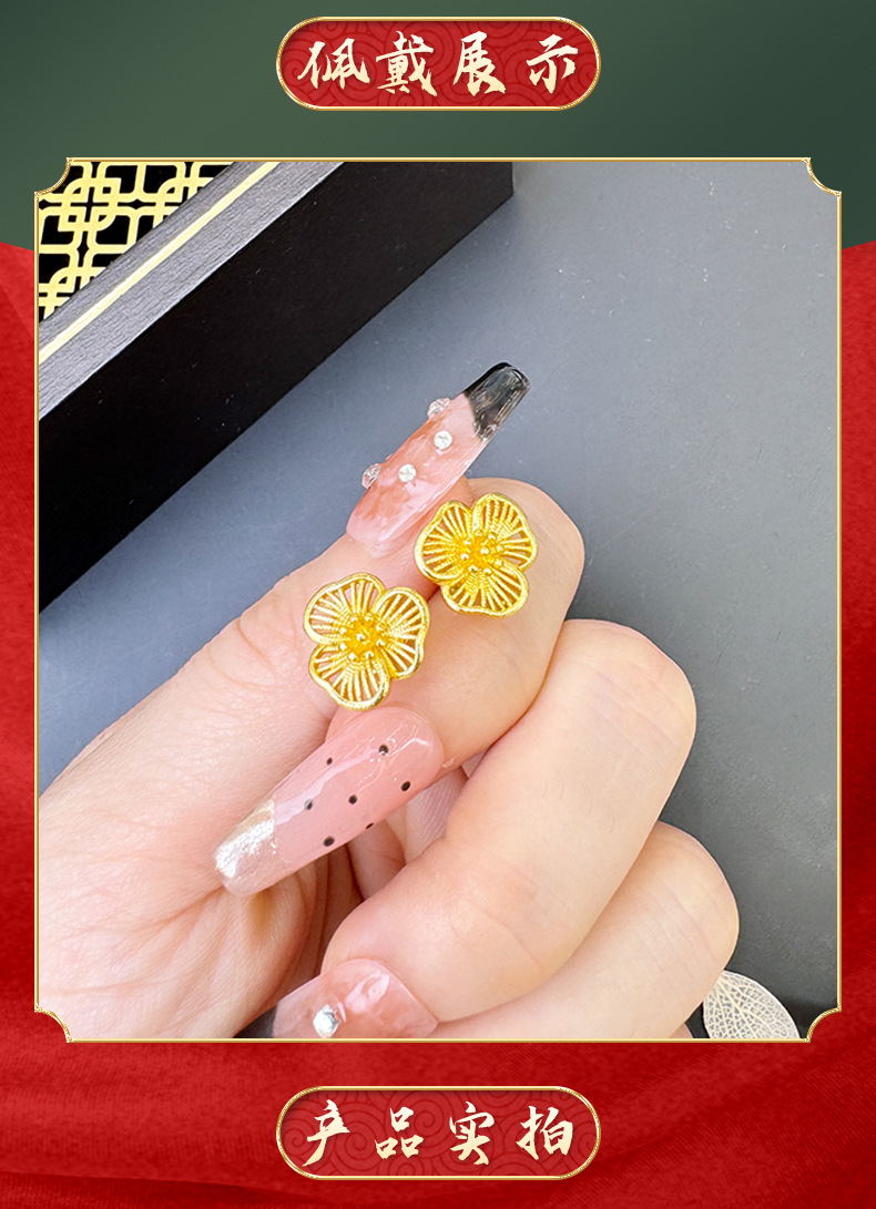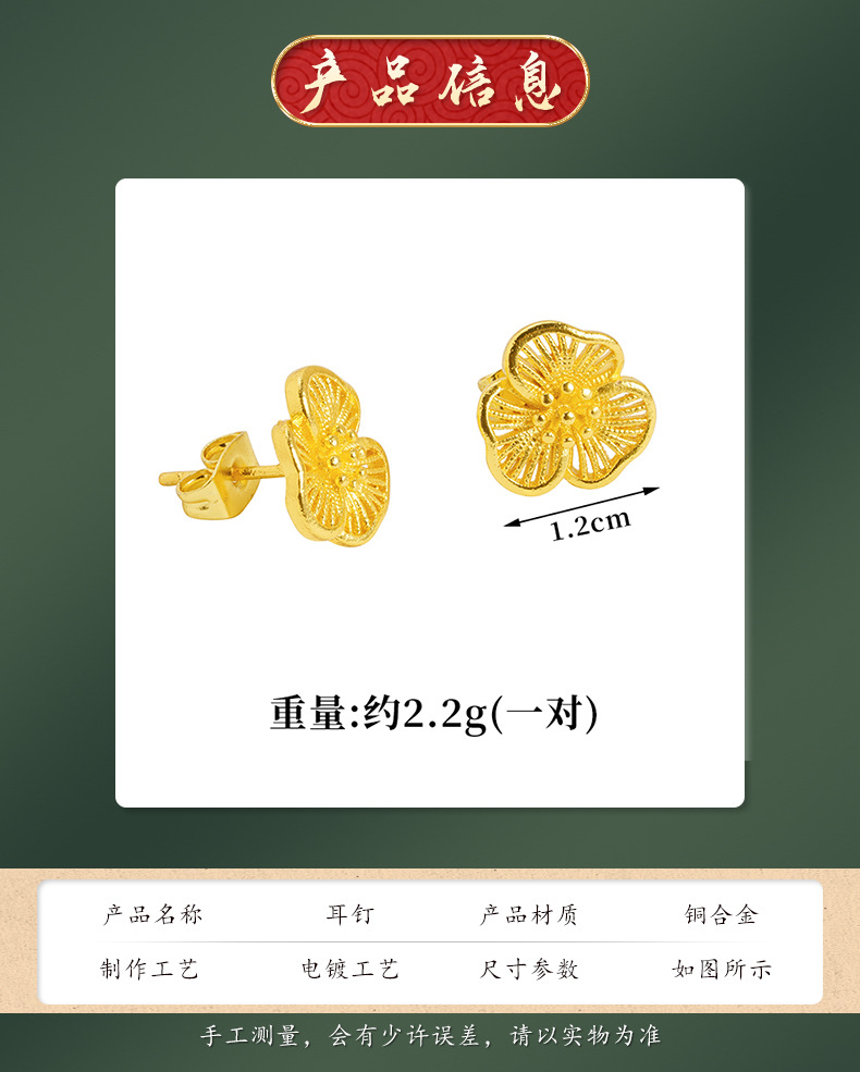 Sand Gold Sansheng flores huecos pernos de orejas de cobre chapado en oro delicados orejas de flores joyas de lujo ligero accesorios de Yiwu no se desvanecen