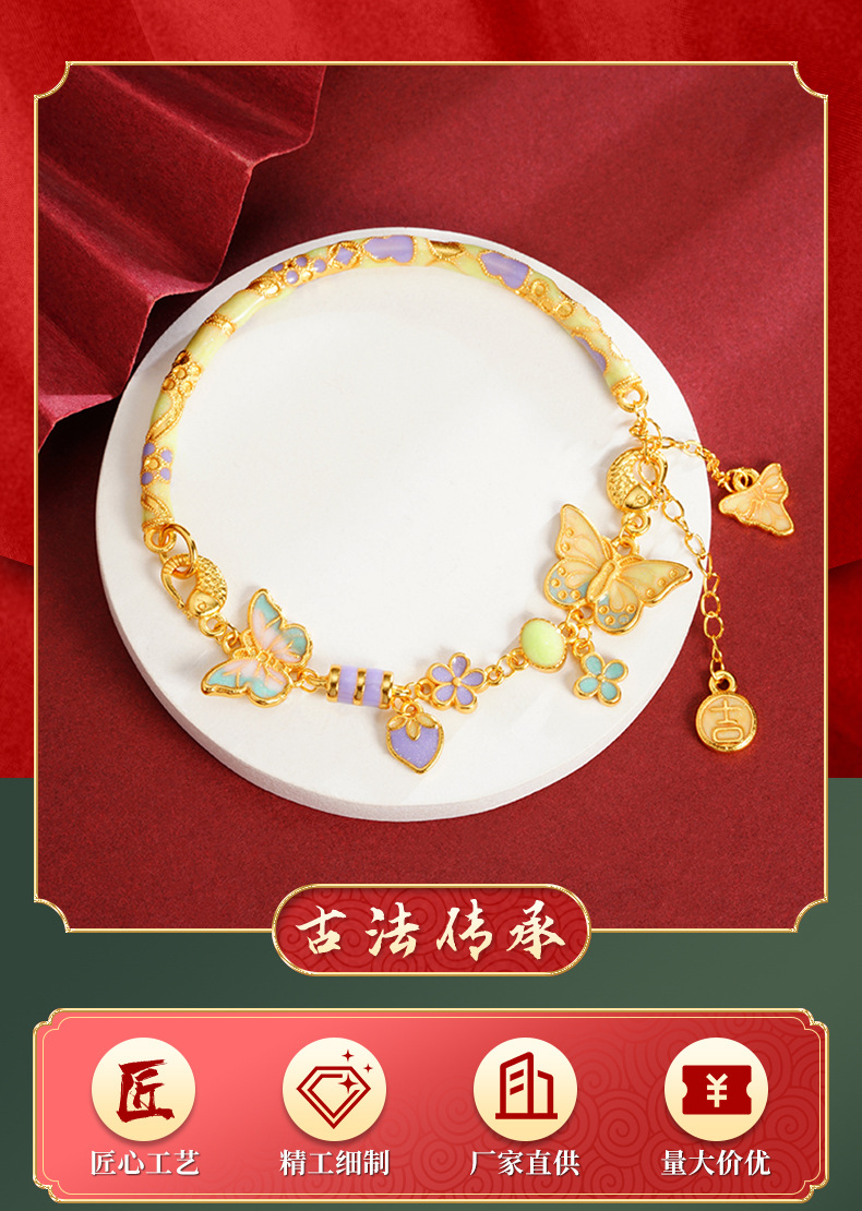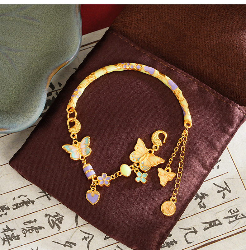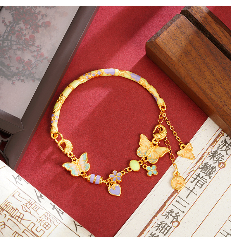 Nueva pulsera china de oro de arena vietnamita de lujo esmalte antiguo diseño de pulsera mariposa para joyas no se desvanecen