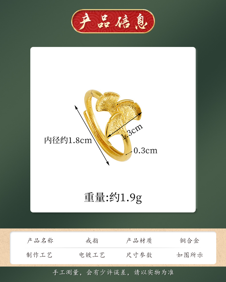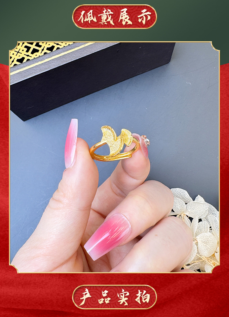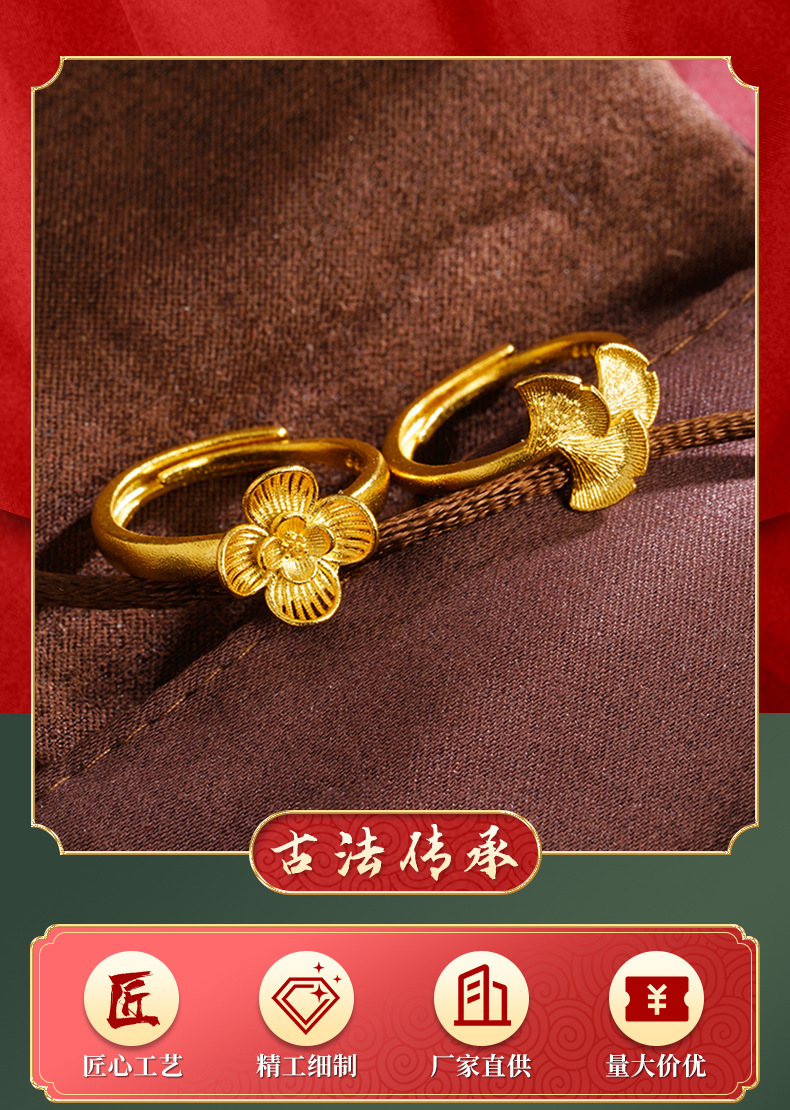 Anillo de oro esmerilado de oro vietnamita flores de ginkgo, estilo nacional, anillo de lujo ligero, pequeño fabricante fresco y lindo.