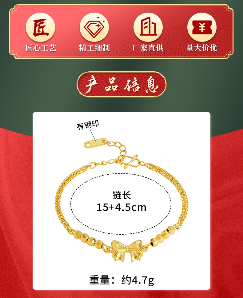 Vietnam oro pulsera arco ajustable fresco mujer dulce simple Internet celebridad mismo estilo no-desvanecimiento fábrica