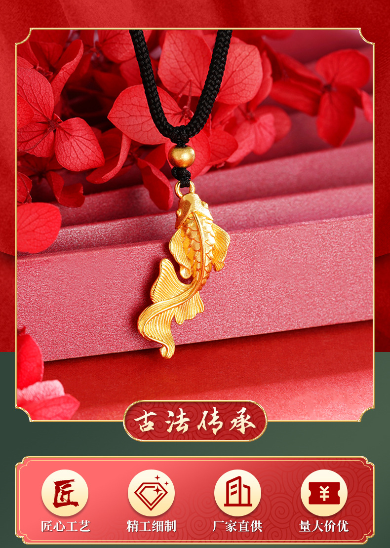Big Fish Begonia trenzado cuerda colgante nacional retro Vietnam arena oro koi collar joyería de la aleación de cobre no se desvanece durante mucho tiempo
