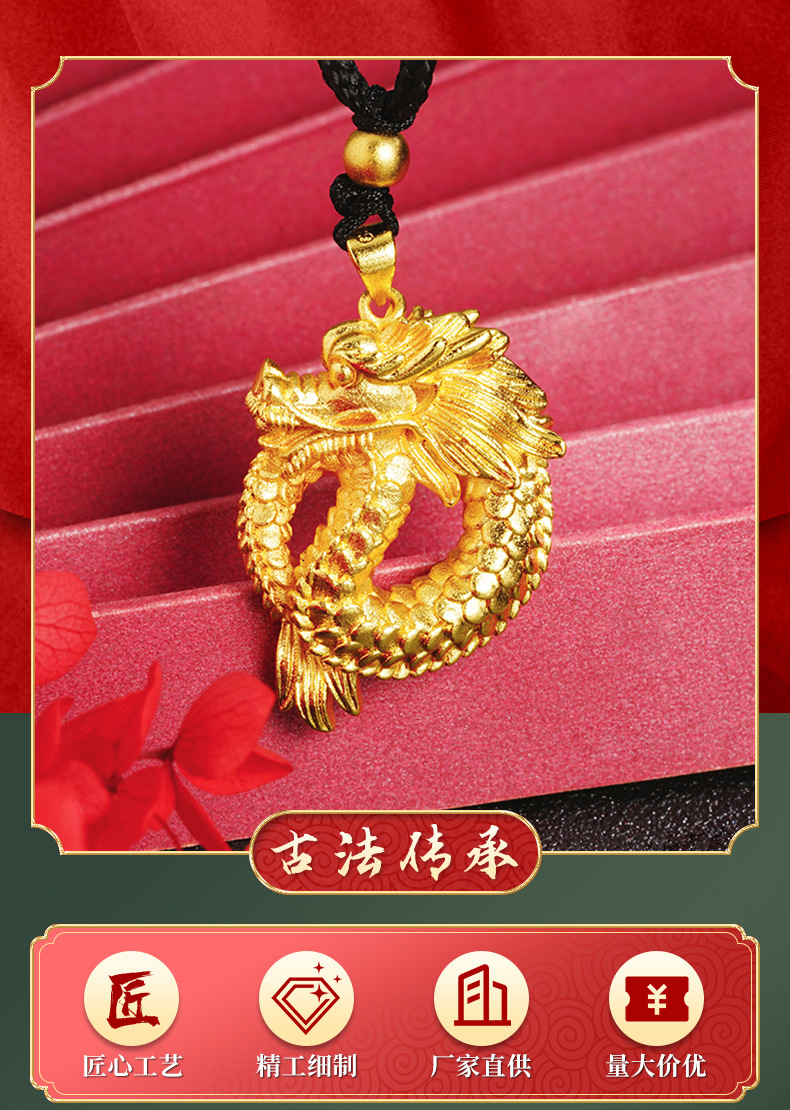 Estilo antiguo arena oro Panlong collar Dragón Volador Zodiaco dragón dominante de los hombres colgante transmisión en vivo mismo suministro Ventas Directas la fábrica