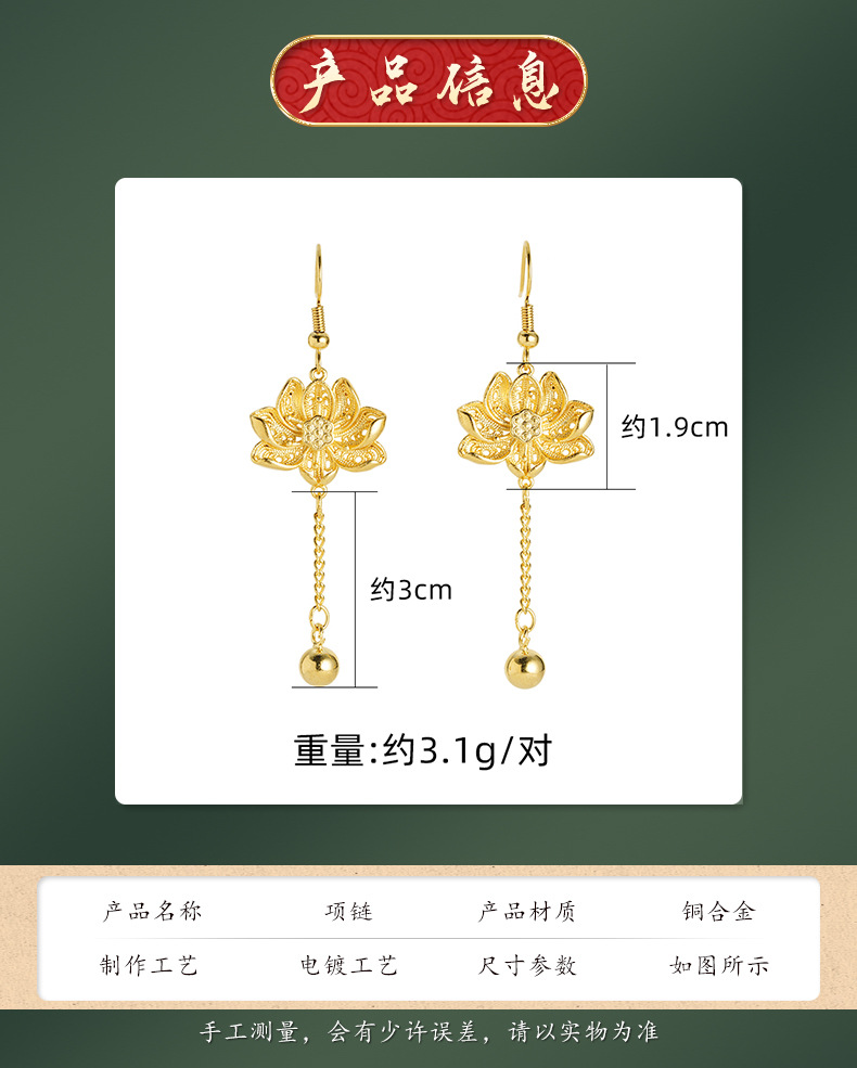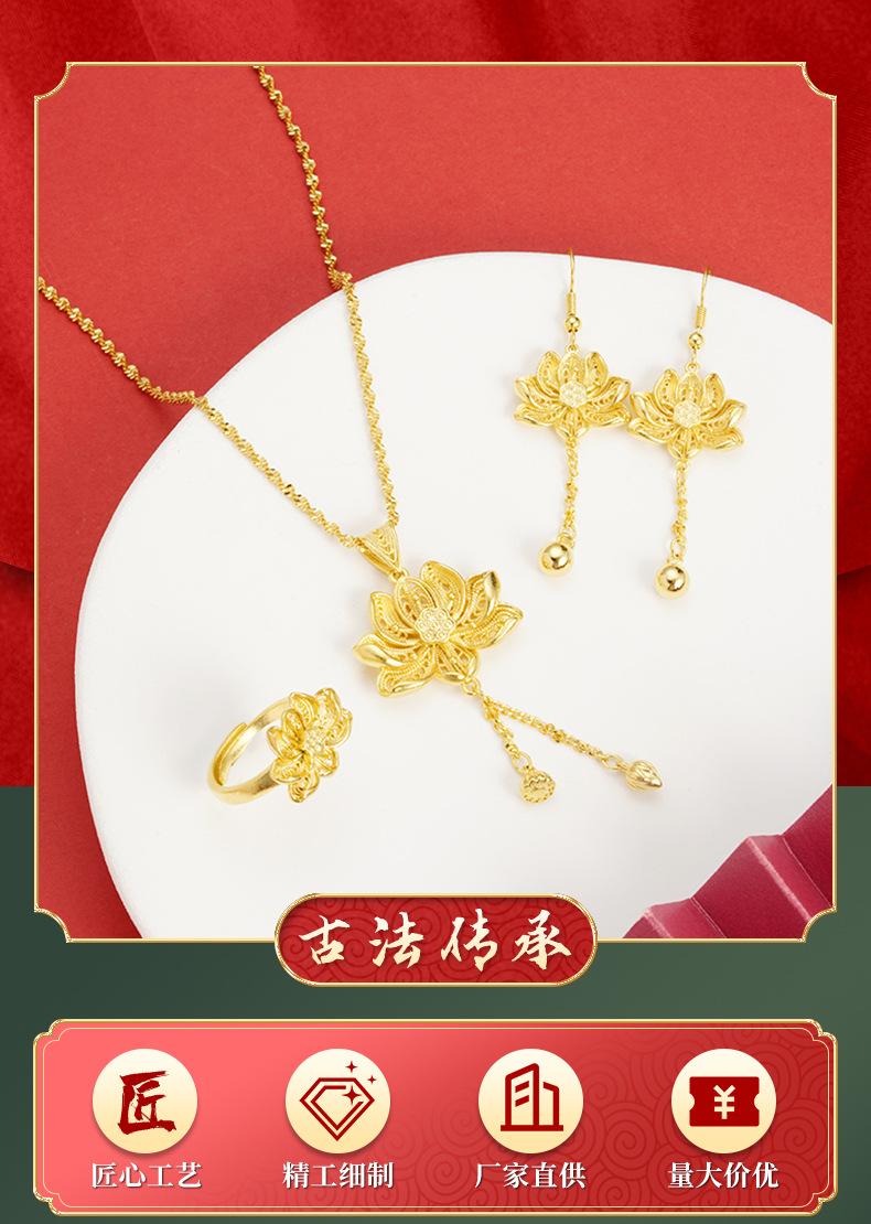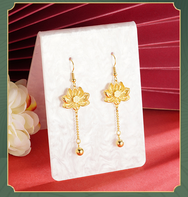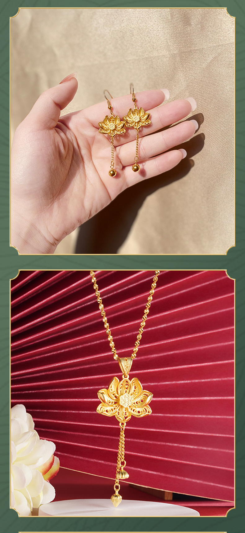 Estilo antiguo de oro collar de loto anillo de gota para el oído traje de estilo chino corte de las mujeres todo partido sala de estar caliente suministro