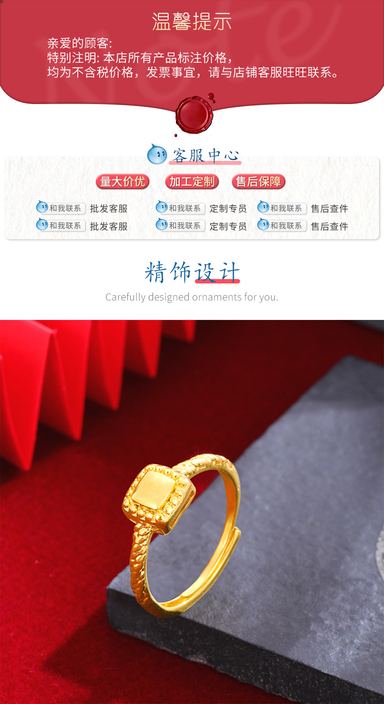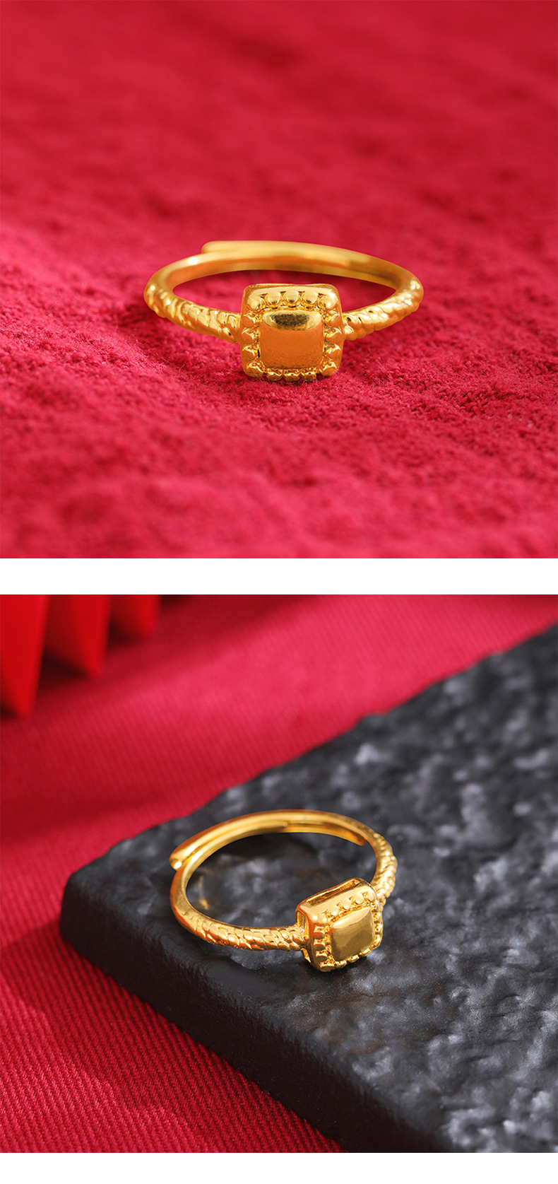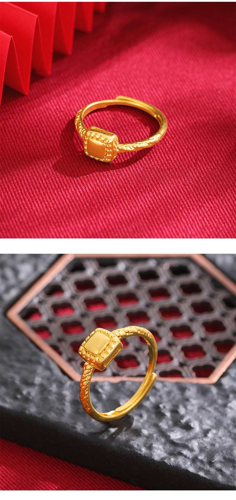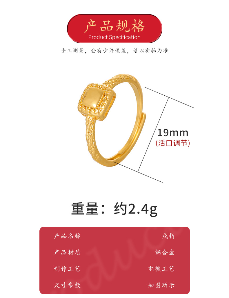 Alto sentido Pequeño Libro Rojo popular anillo de mujer nicho simple a juego de moda anillo de oro Arena de azúcar cuadrado pequeño lujo ligero