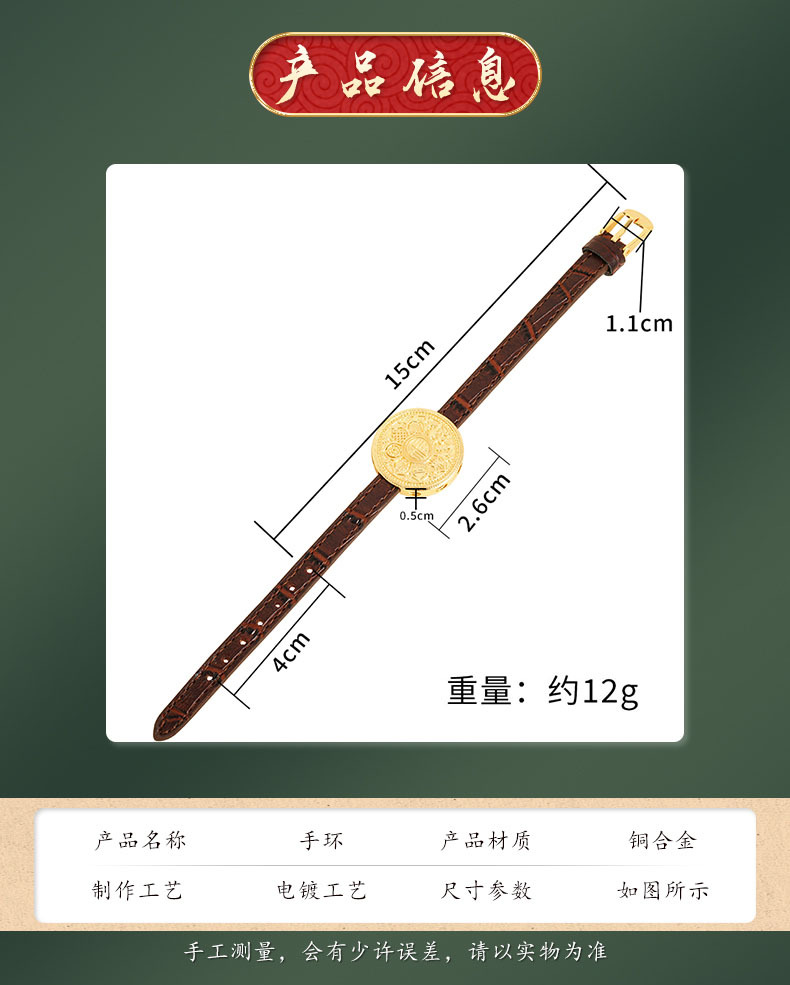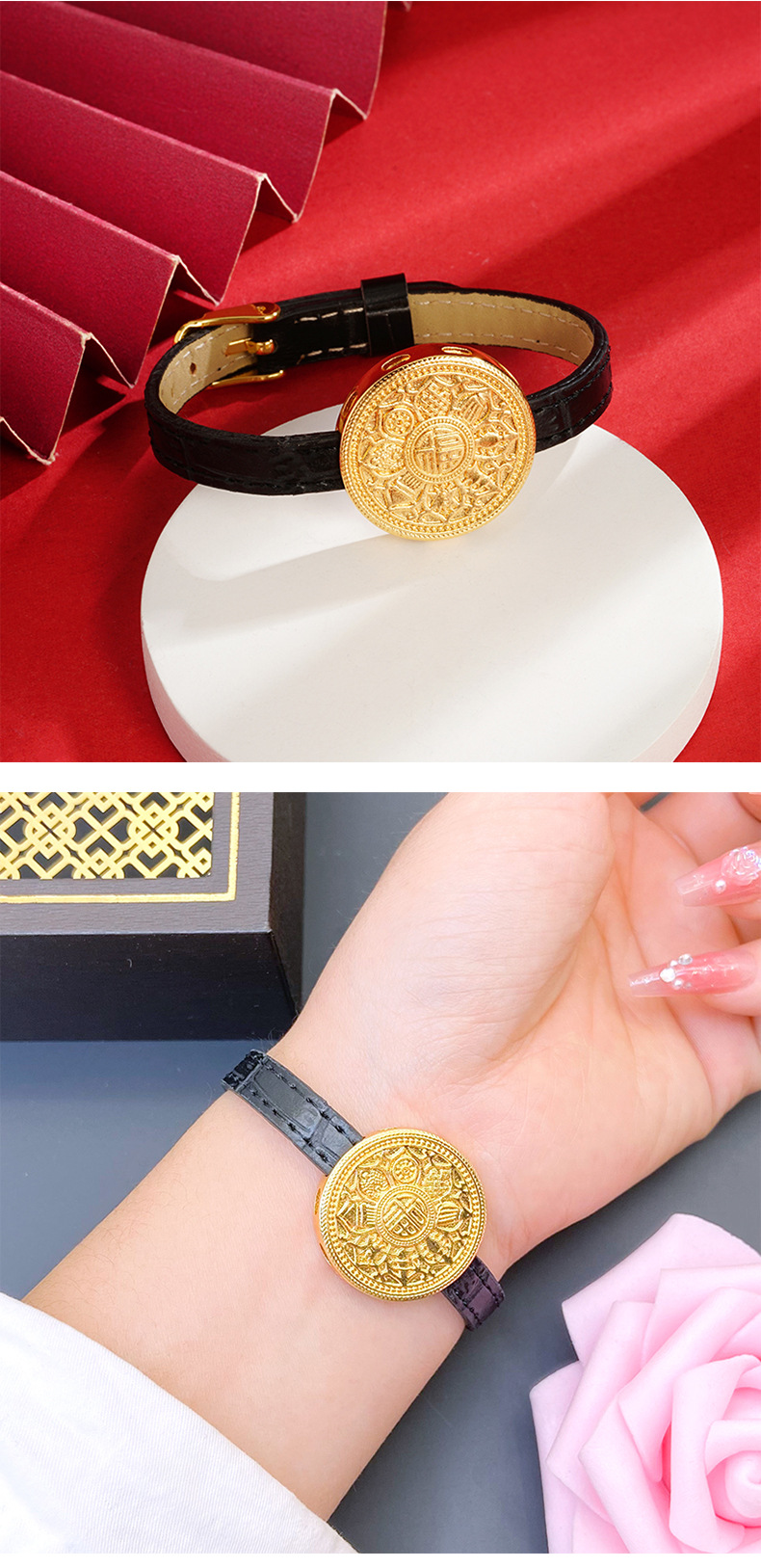 Estilo antiguo oro brújula reloj pulsera temblar rápido mismo estilo cobre chapado en oro hombres y mujeres auspicioso personalidad estilo chino pulsera de todos los partidos