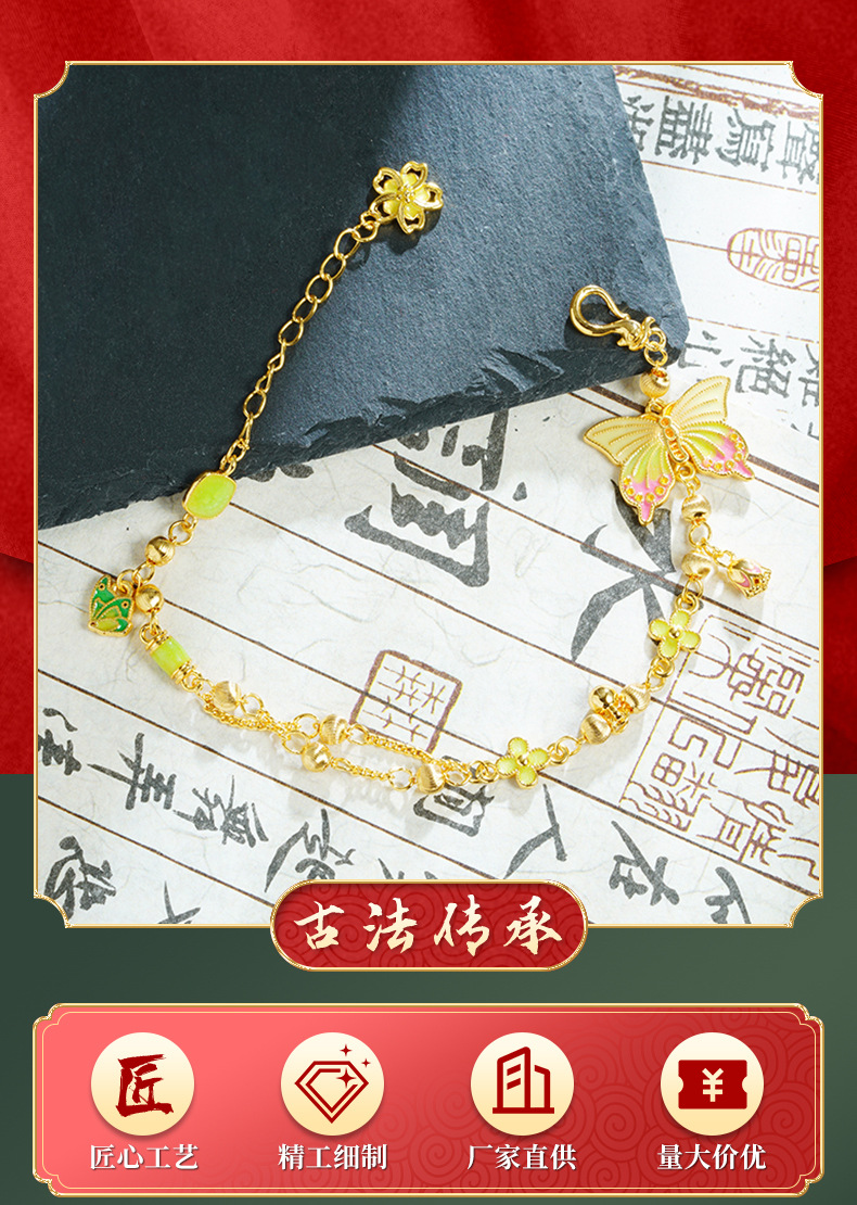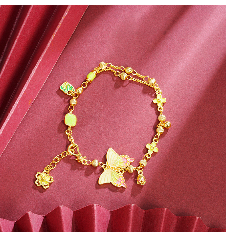 Vietnam oro oro esmalte retro mariposa color pulsera de flores palacio viento no se desvanece joyas fuente al por mayor
