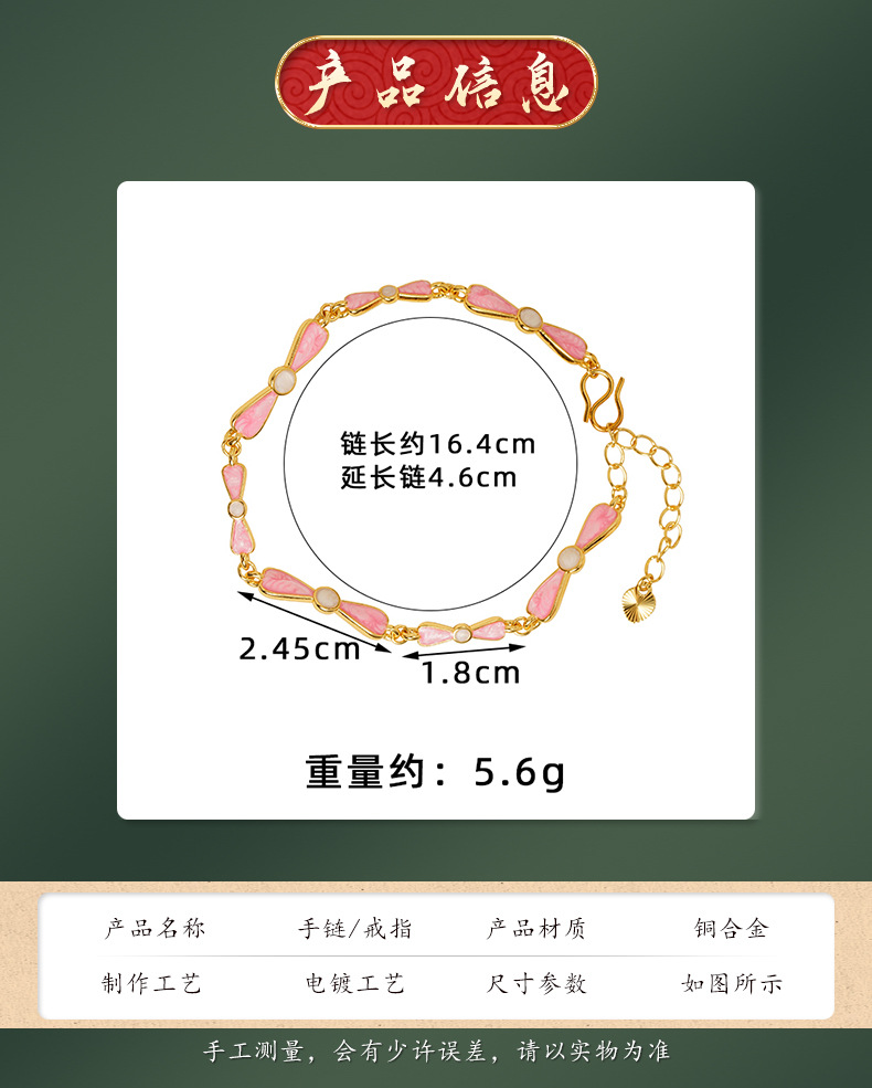 Brazalete de oro de arena vietnamita estilo de diseño nacional esmalte rosa anillo de arco de mariposa universal joyas no se desvanecen