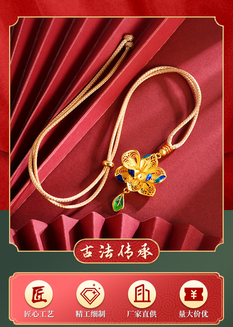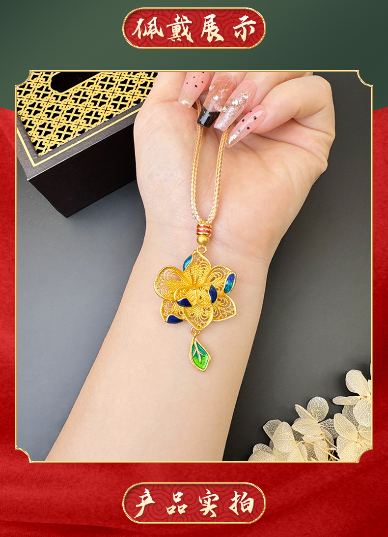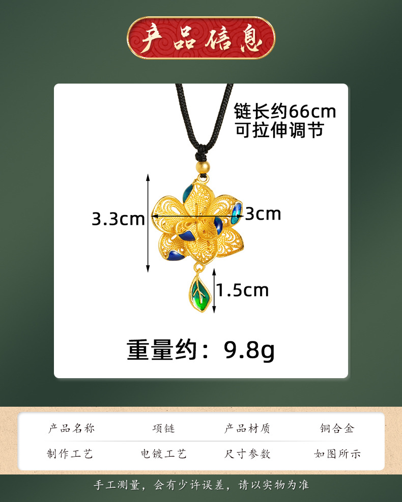 Antiguo oro de oro de lujo ligero de Vietnam nuevos productos de alta calidad flores hueco goteo de aceite de esmalte collar de hoja de color mujer fábrica al por mayor