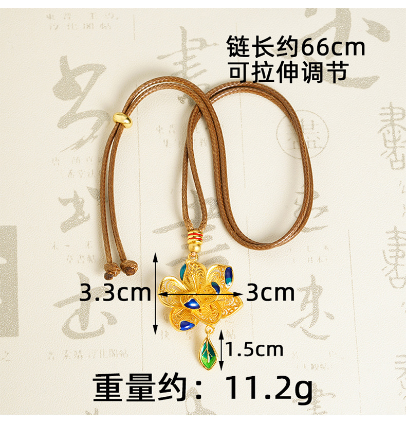 | Color | Collar de flores x2718 (cuerda marrón poco profunda), collar de flores x2719 (cuerda marrón), collar de flores x2720 (cuerda negra), colgante de flores d2359 (sin cadena) |