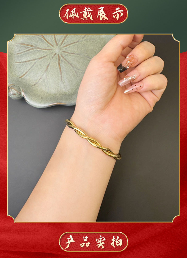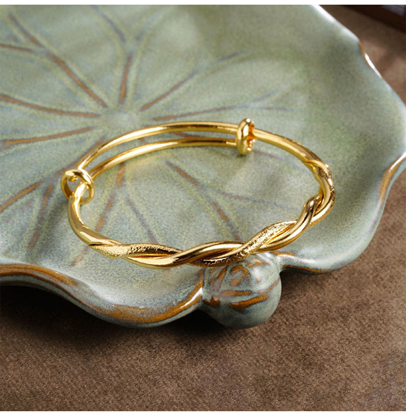Antiguo método vietnamita oro de arena china torcido tejido brillante esmerilado pulsera de empuje temperamento simple joyas de alta calidad