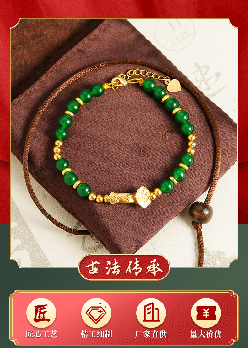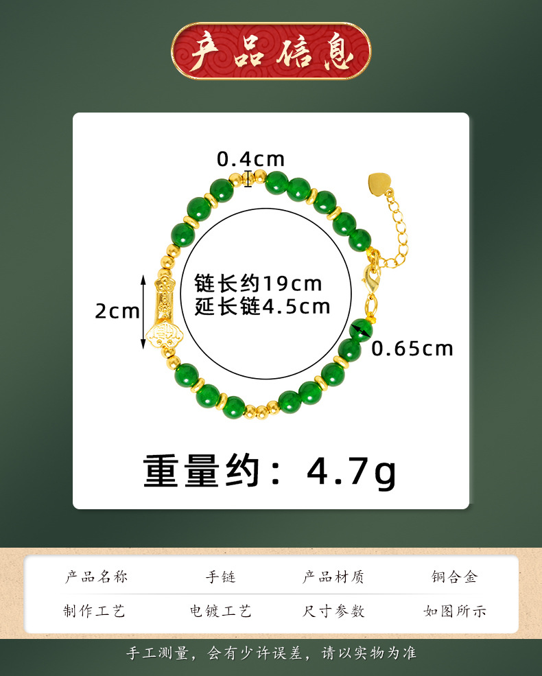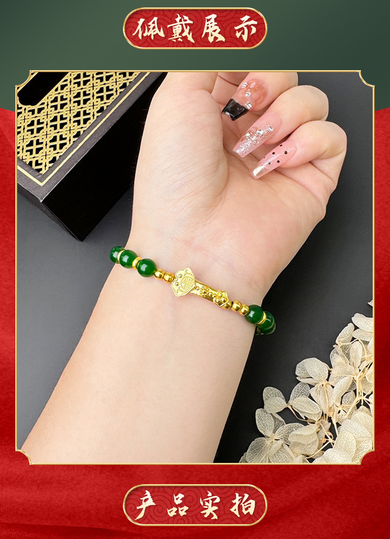 Vietnam oro de arena retro imitación pulsera de jade con cuentas Ruyi no se desvanece durante mucho tiempo estilo chino lujo joyería Yiwu al por mayor