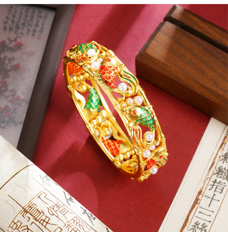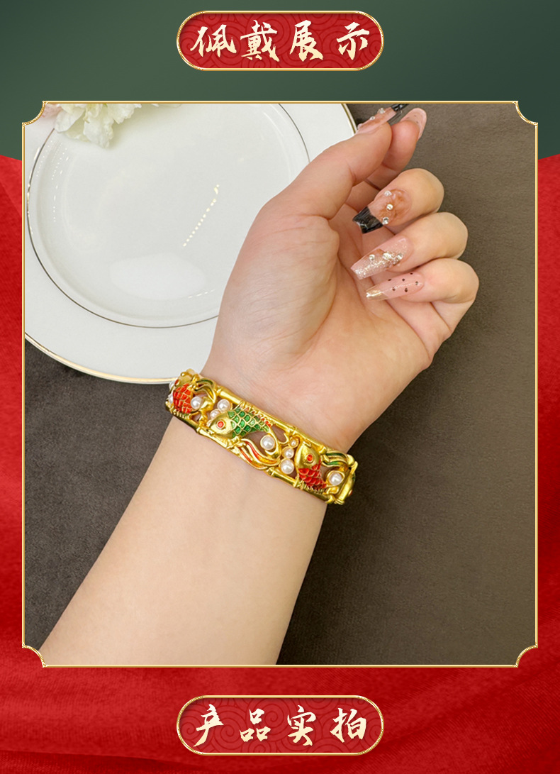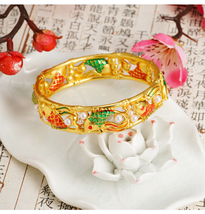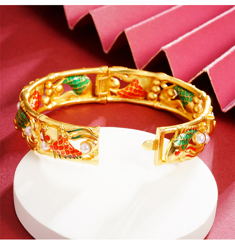 Antiguo oro de arena vietnamita chino arroz azul pulsera de perla koi simple de alta calidad joyas no se desvanecen
