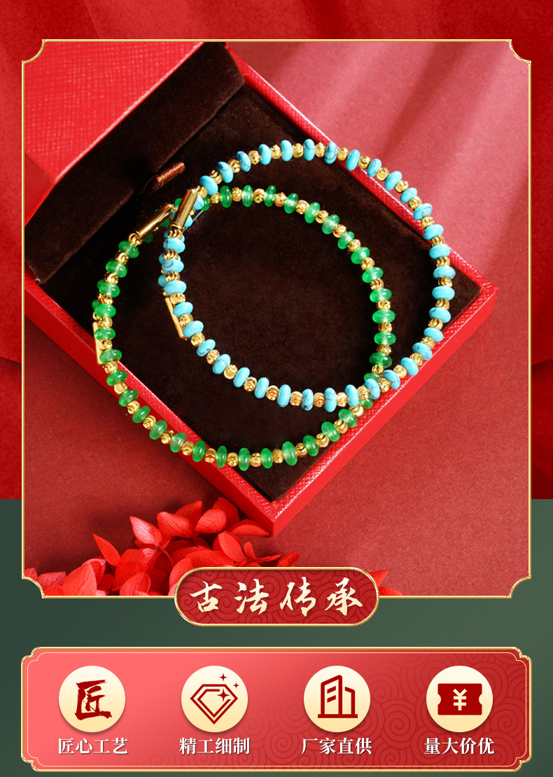 Brazalete de oro de arena vietnamita azul y verde de la marea nacional de cuentas de temperamento de las mujeres no se desvanecerá nicho al por mayor joyería de alta calidad