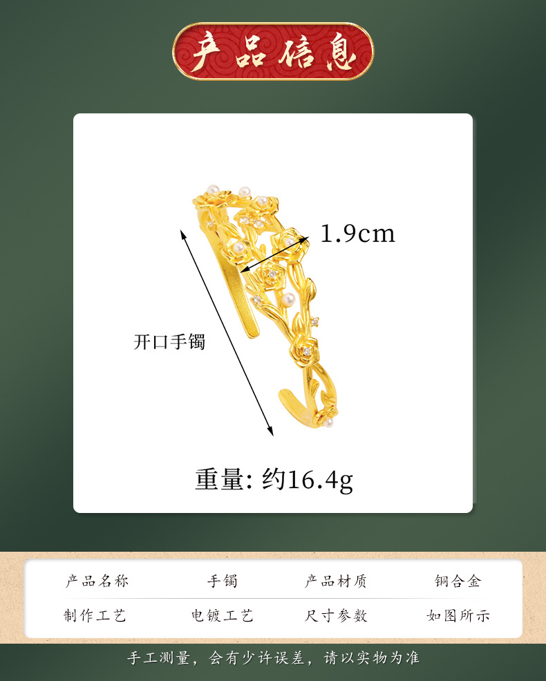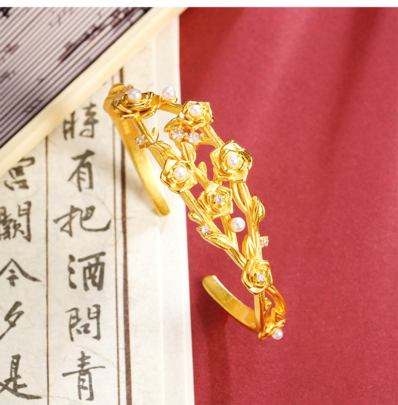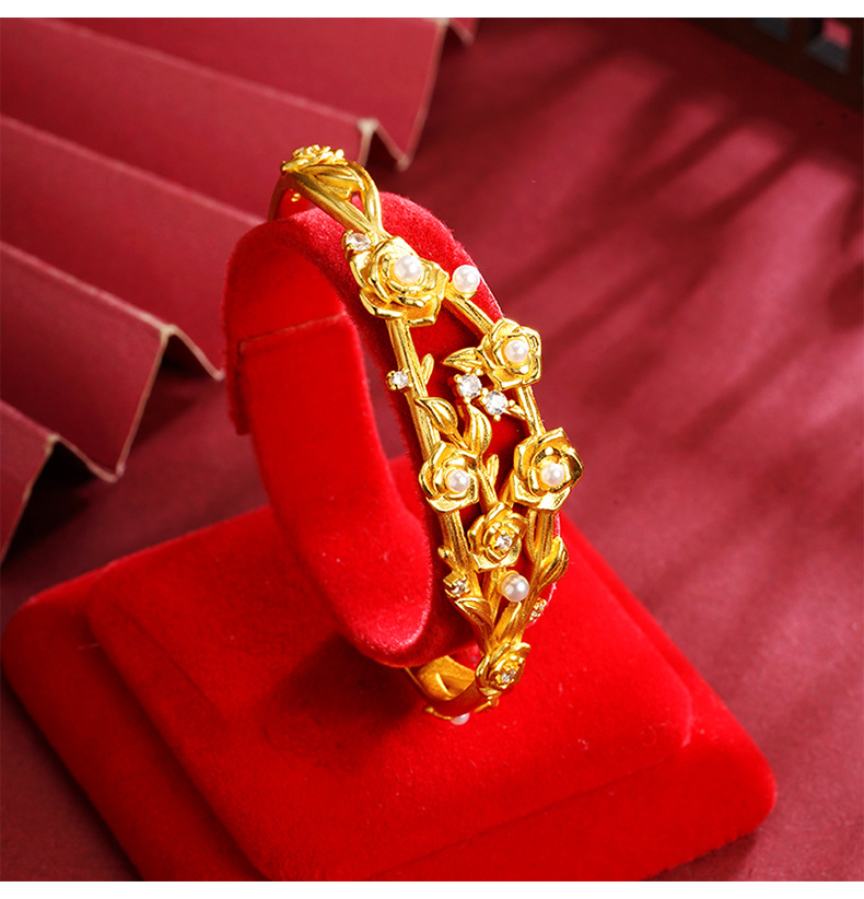 Nuevo brazalete de oro de arena vietnamita nicho de alto nivel flor imitación de perla brazalete de apertura de moda no se desvanece joyería
