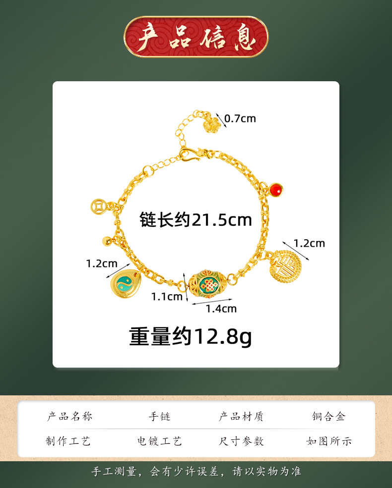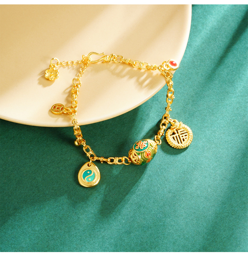 Vietnam Sha Jin Fengxiang Yun Tai Chi Fu pulsera chapado en oro no se desvanecerá retro joyería Yiwu al por mayor