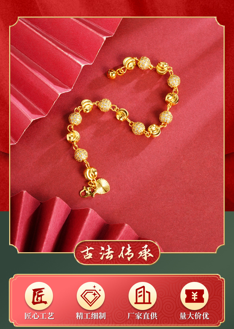 Vietnam sandy retro micro-incrustado sandía perlas pulsera campana simple mujer lujo ligero no se desvanece joyería fuente al por mayor