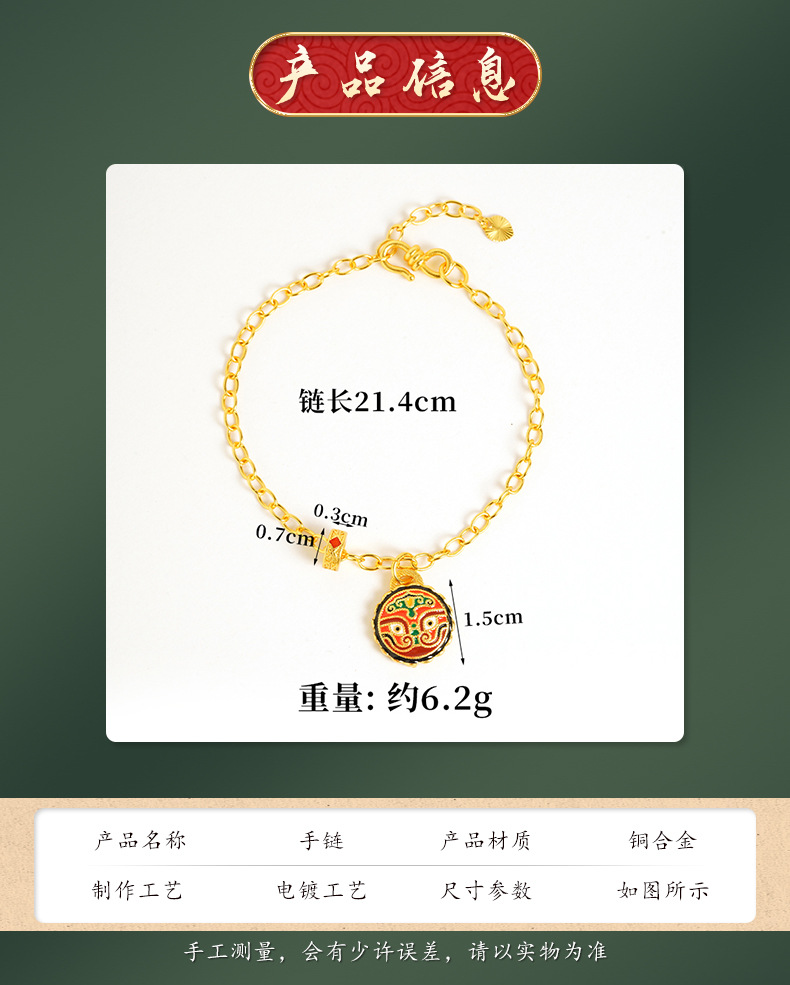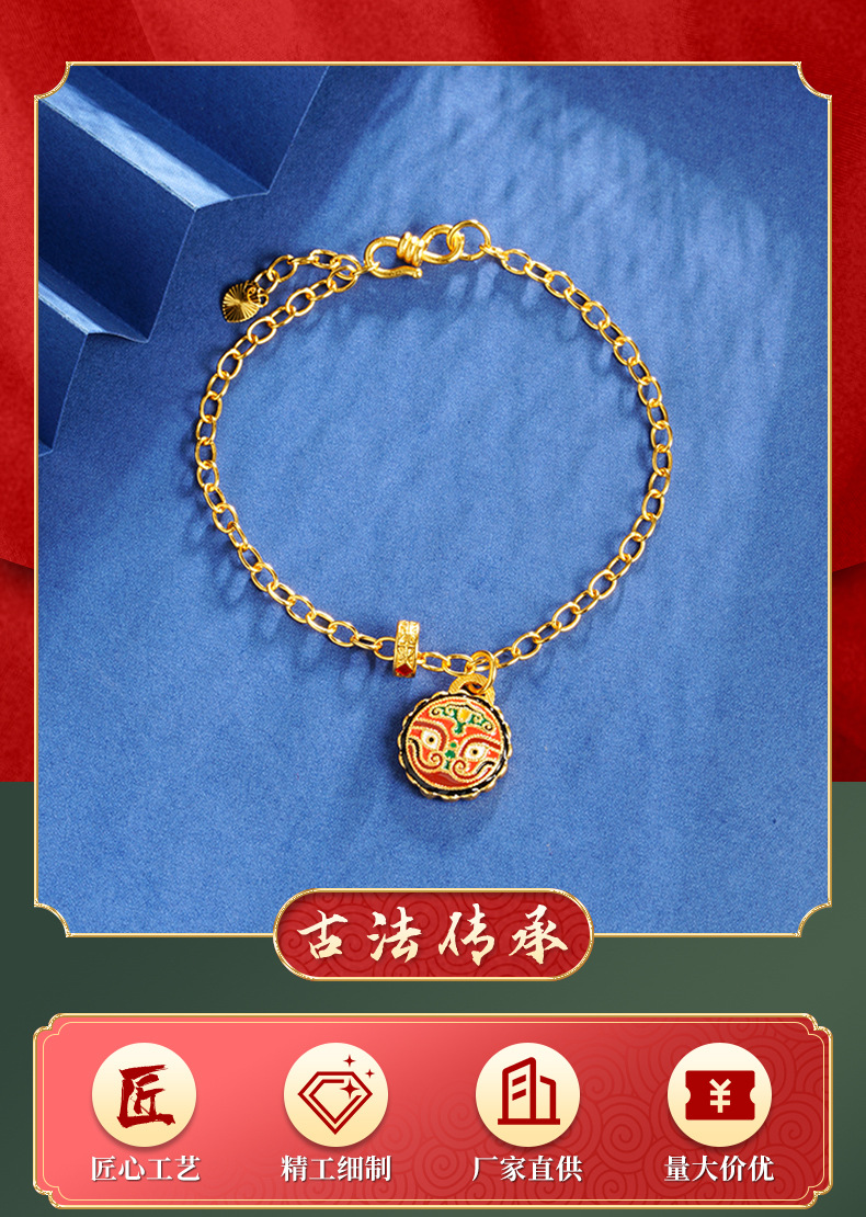 Gufasha esmalte de oro de color nacional de moda engullir oro Rui Bestia quemado azul pulsera de tallado de doble cara ligero lujo joyas no se desvanecen