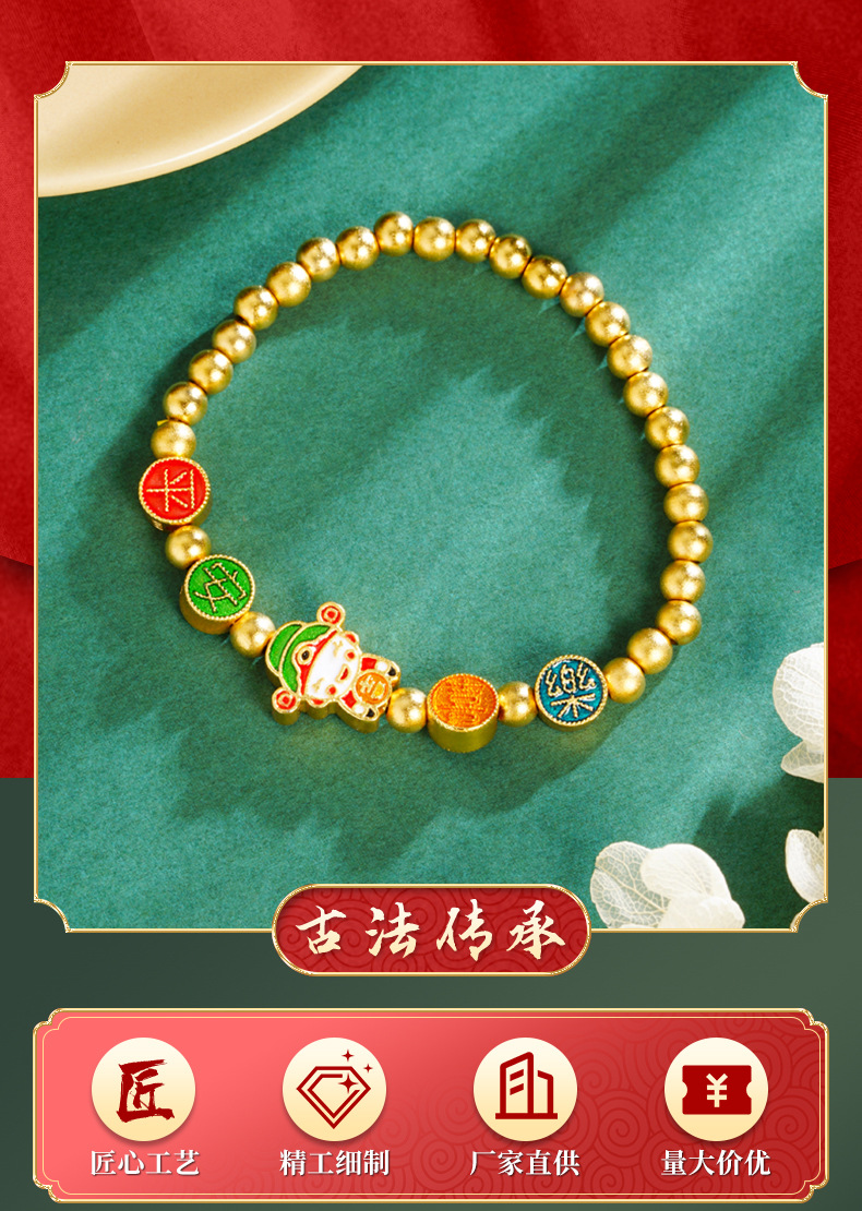 Vietnam Sha Jin Ping An feliz pequeño dios de la fortuna pulsera auspiciosa no se desvanecerá bronce chapado en oro pulseras joyerías suministro