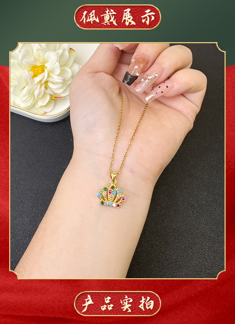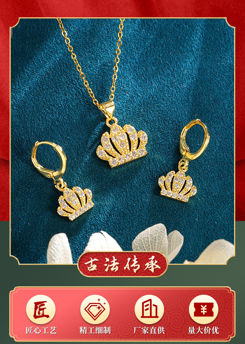 Nuevos aretes de collar de corona de oro de Vietnam, Europa y Estados Unidos, corona de corona de la reina transfronteriza, joyas de lujo al por mayor.