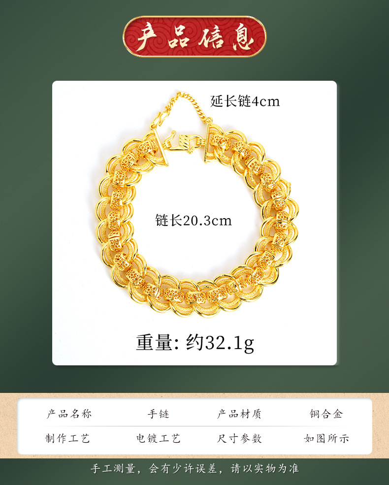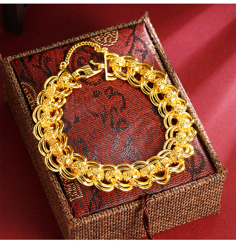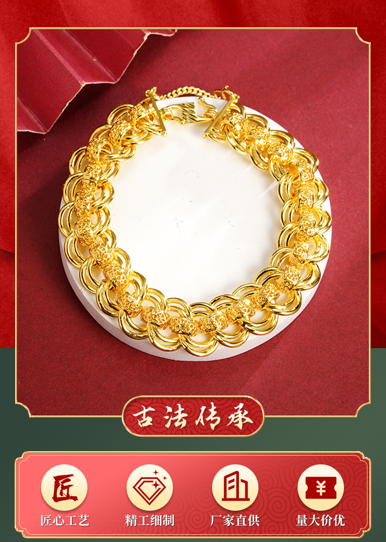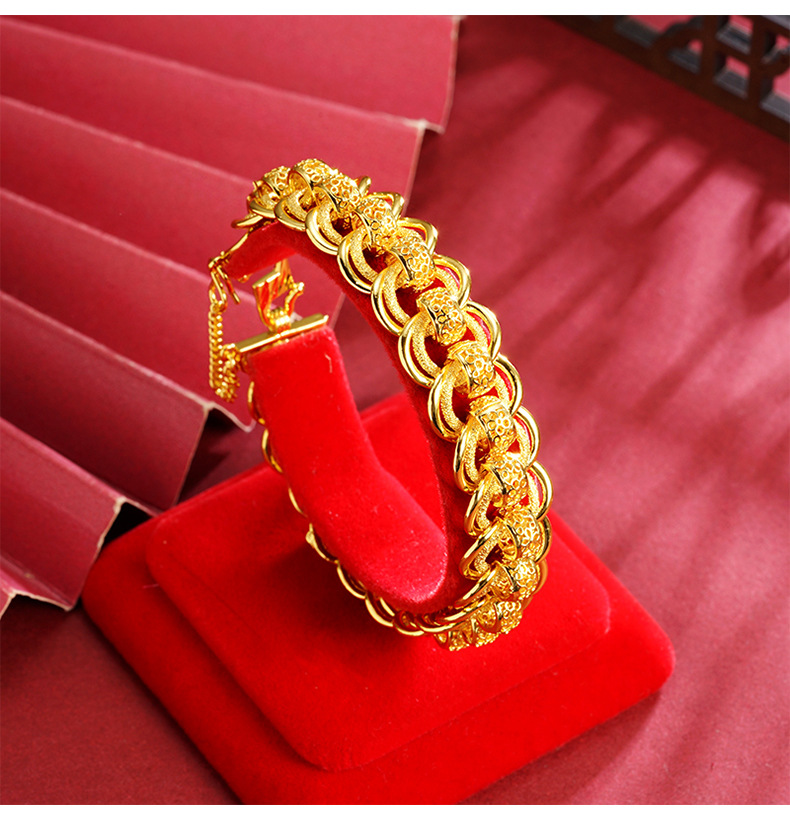 Nueva pulsera de oro de arena de Vietnam para hombres, exagerada edición ancha, pulsera de reloj grande, joyas de moda que no se desvanecen.
