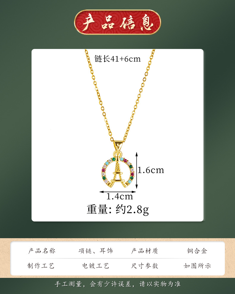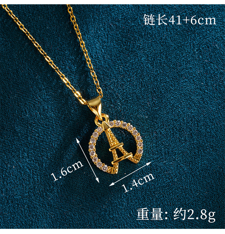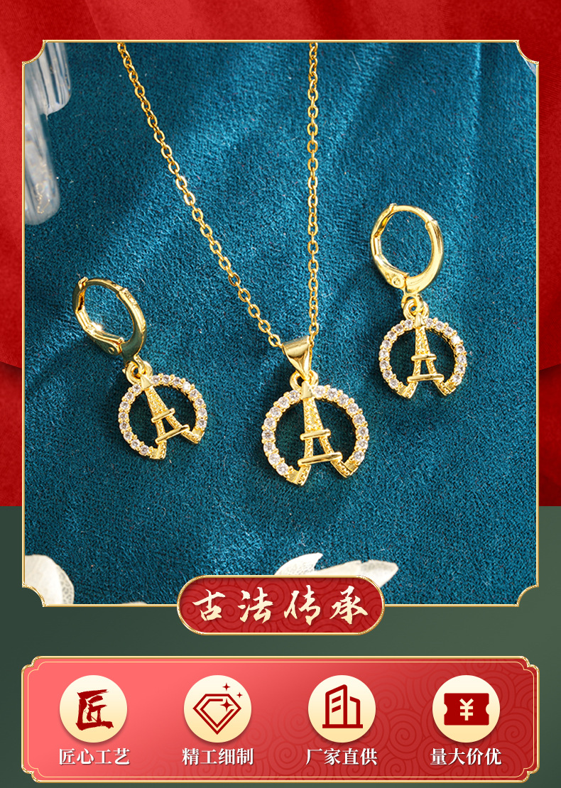Collar de oro de arena vietnamita simple y alta sensación de aretes de la torre Eiffel lujoso ligero para mujeres no se desvanecerá el suministro de joyas