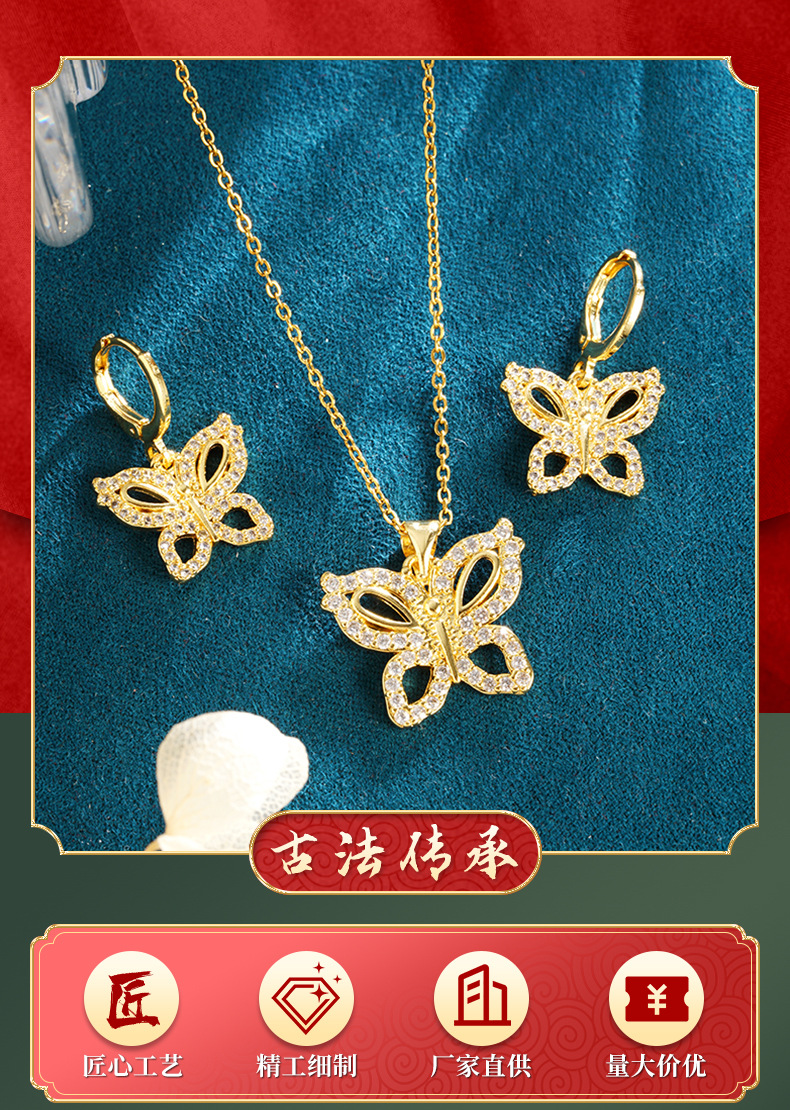 Nuevo collar de oro de arena vietnamita en vivo explosión simple aretes de mariposa moda no se desvanecerá joyas populares al por mayor