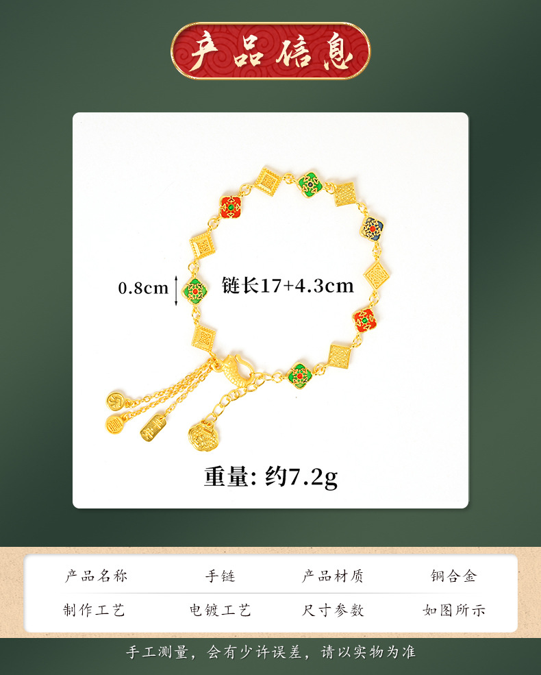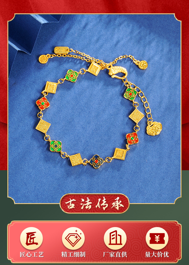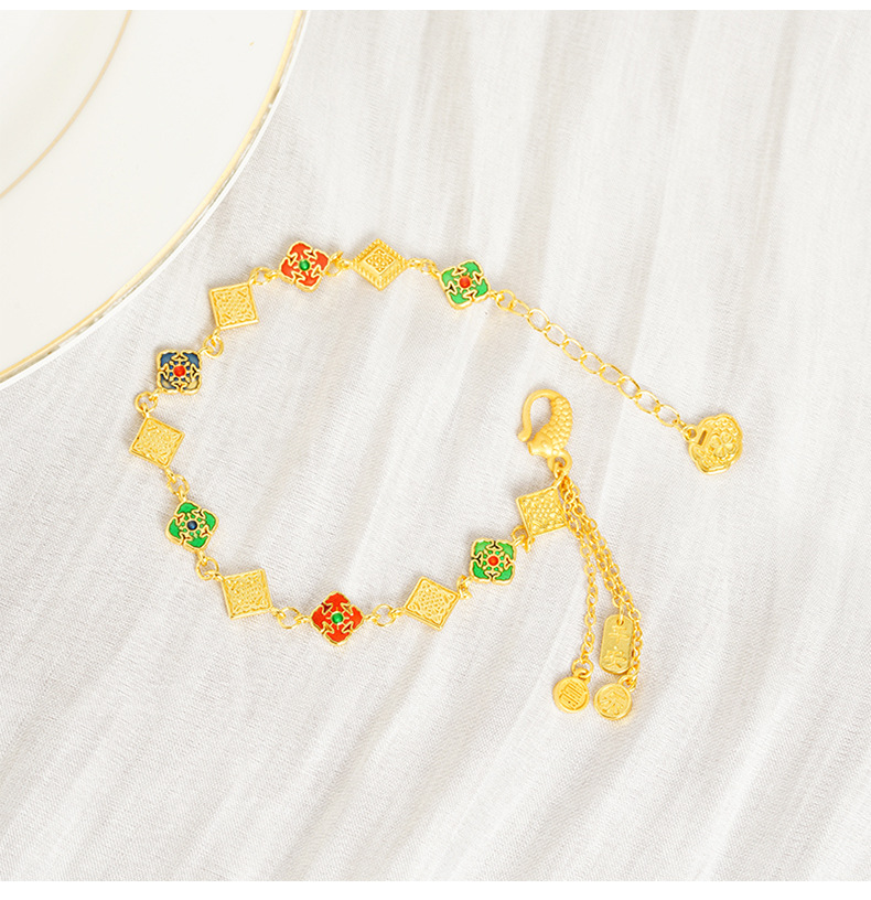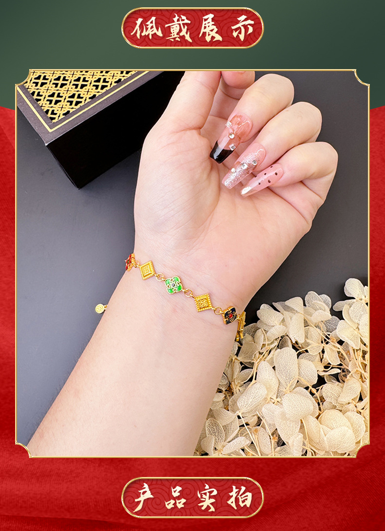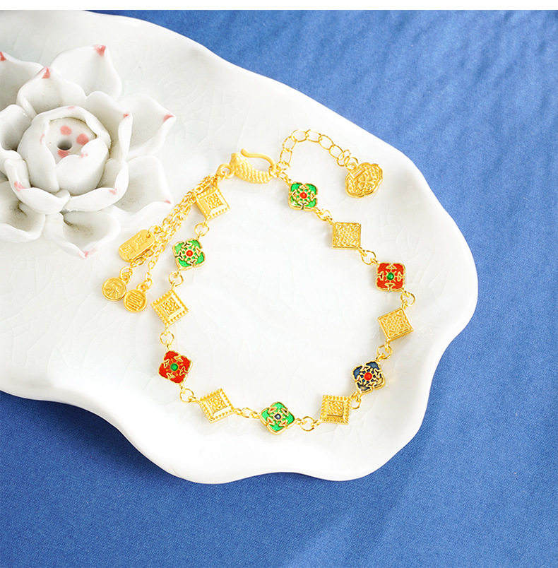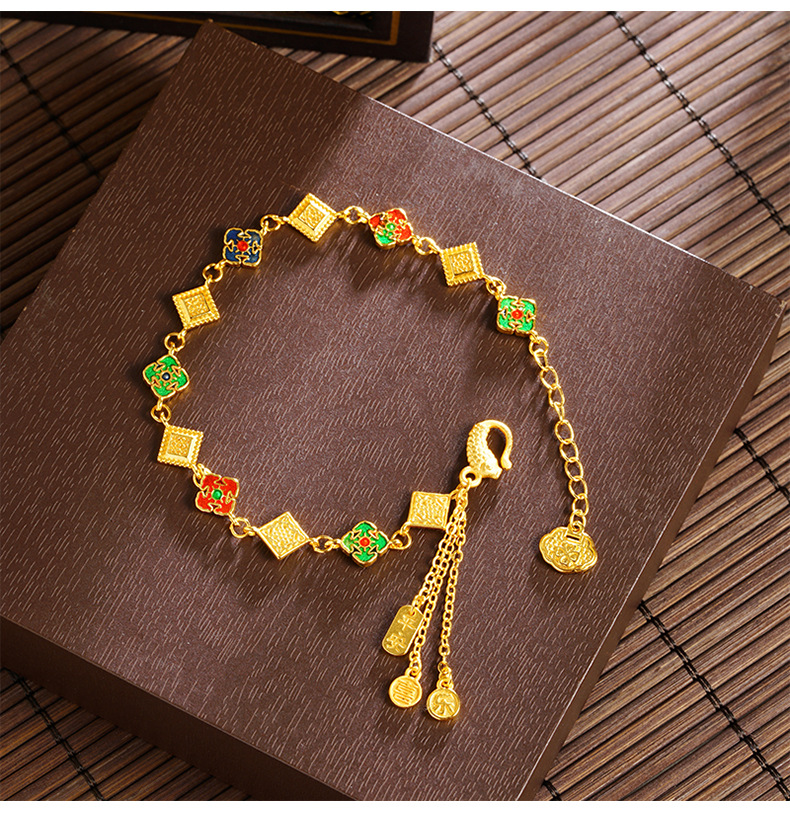 Brazalete de oro de arena de Vietnam nuevo estilo chino diamante esmalte Ping An feliz koi rosas joyerías de bloqueo fuente al por mayor