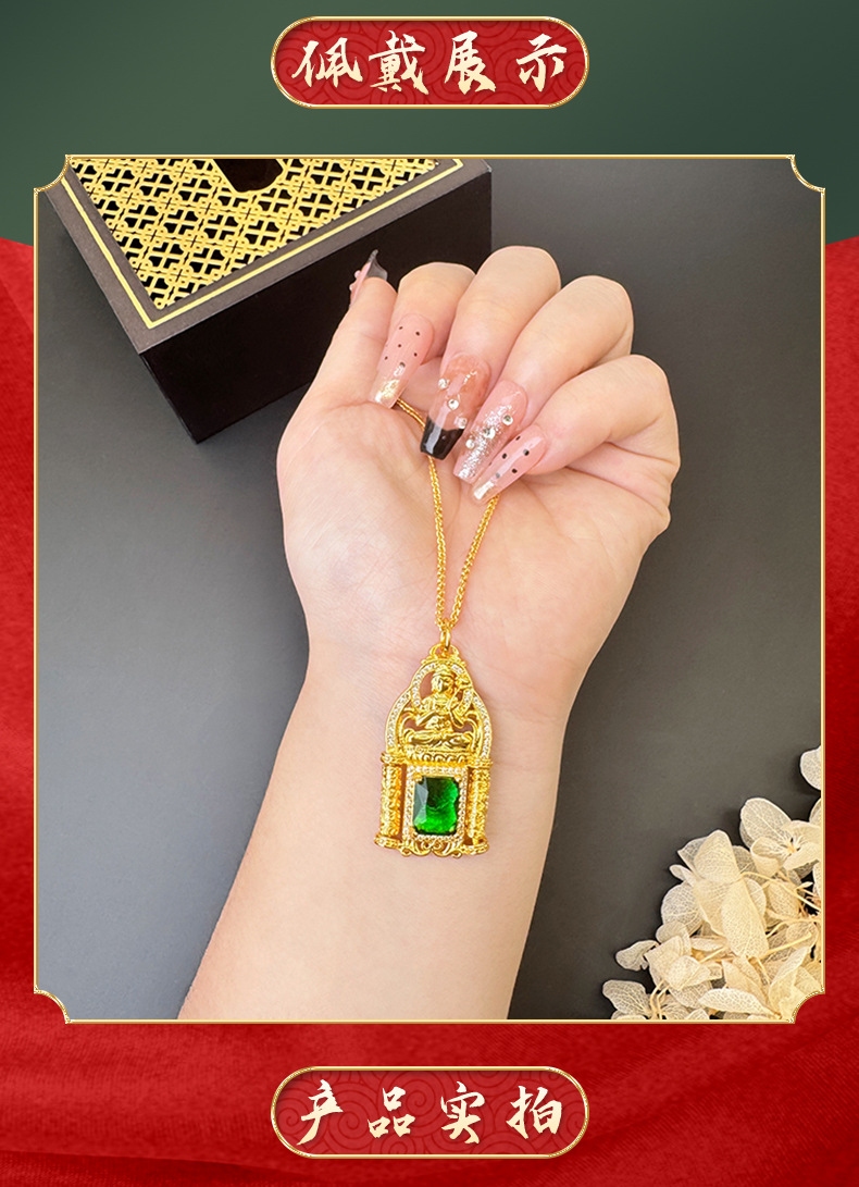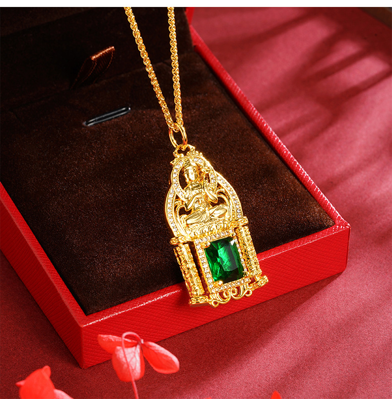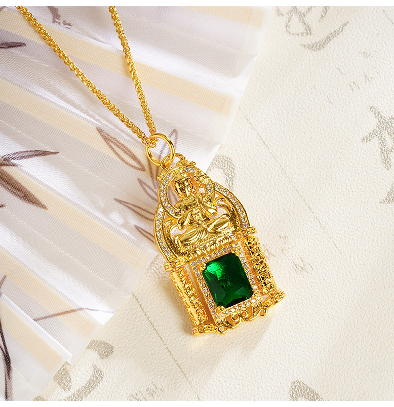 Nuevos productos vietnamita oro de arena ligero de lujo bodhisattva imitación de medula de jade micro incrustado colgante de luz de Buda universal a largo plazo no decoloración accesorios suministro