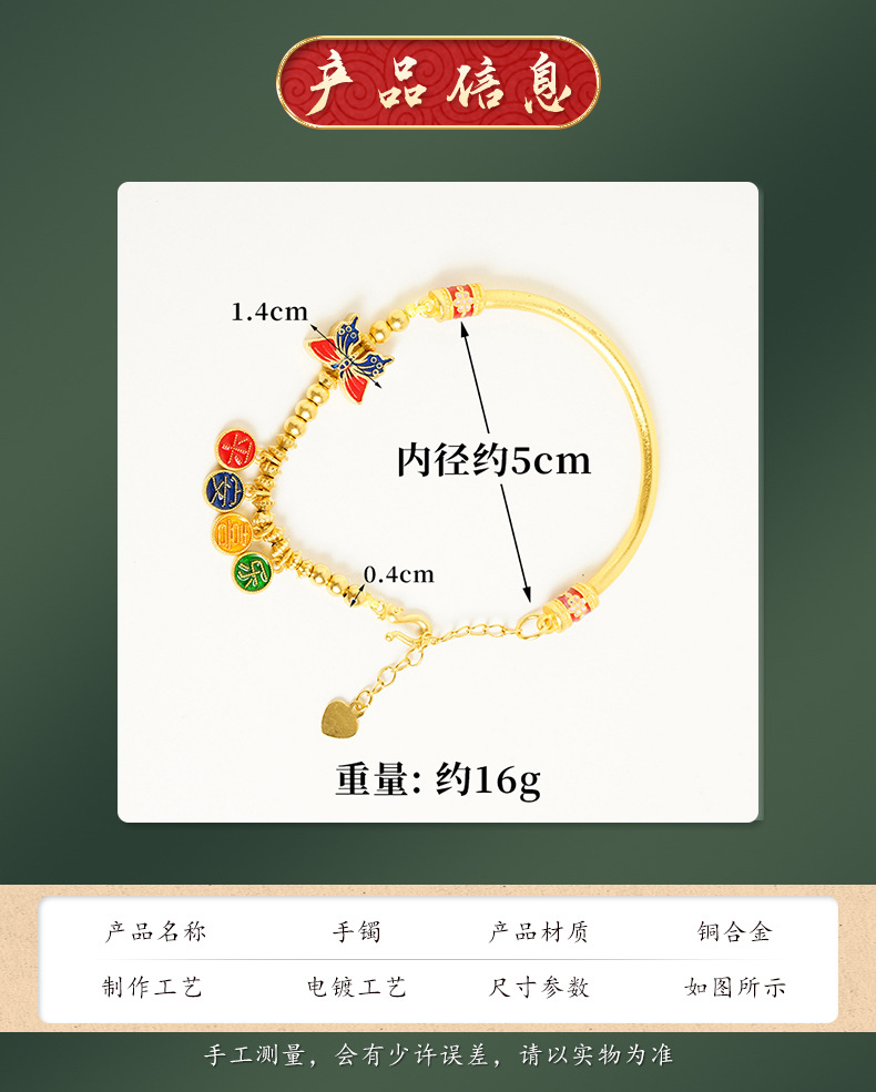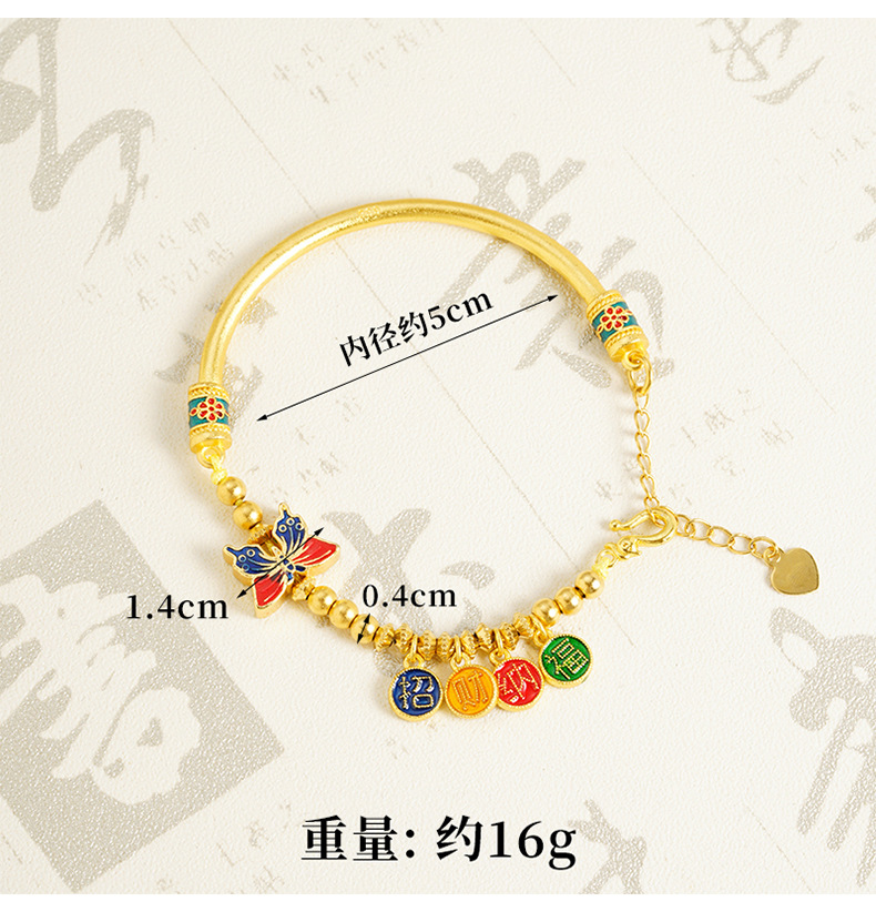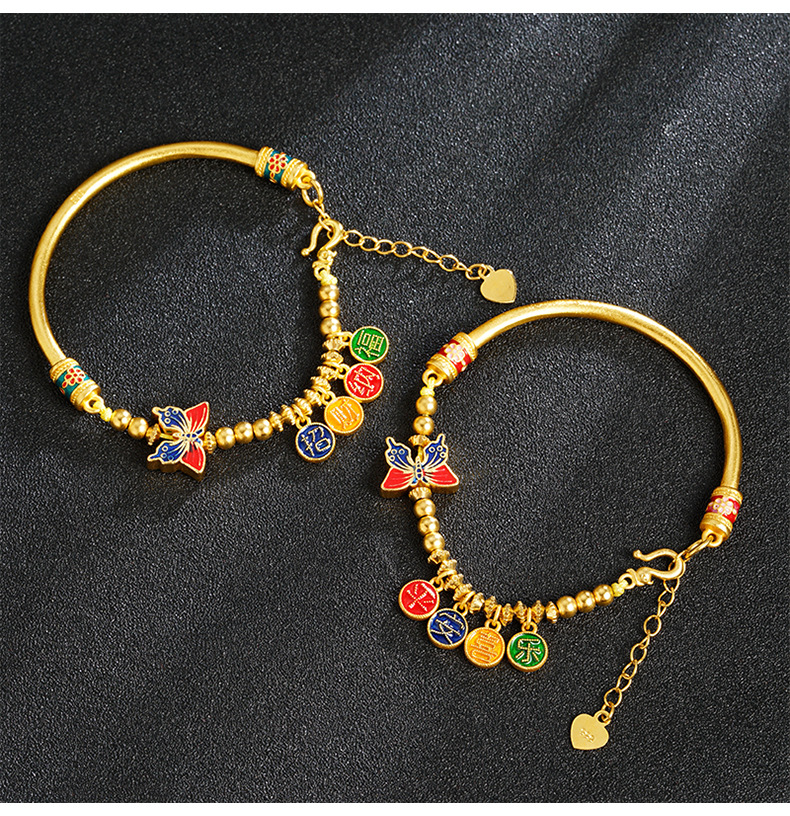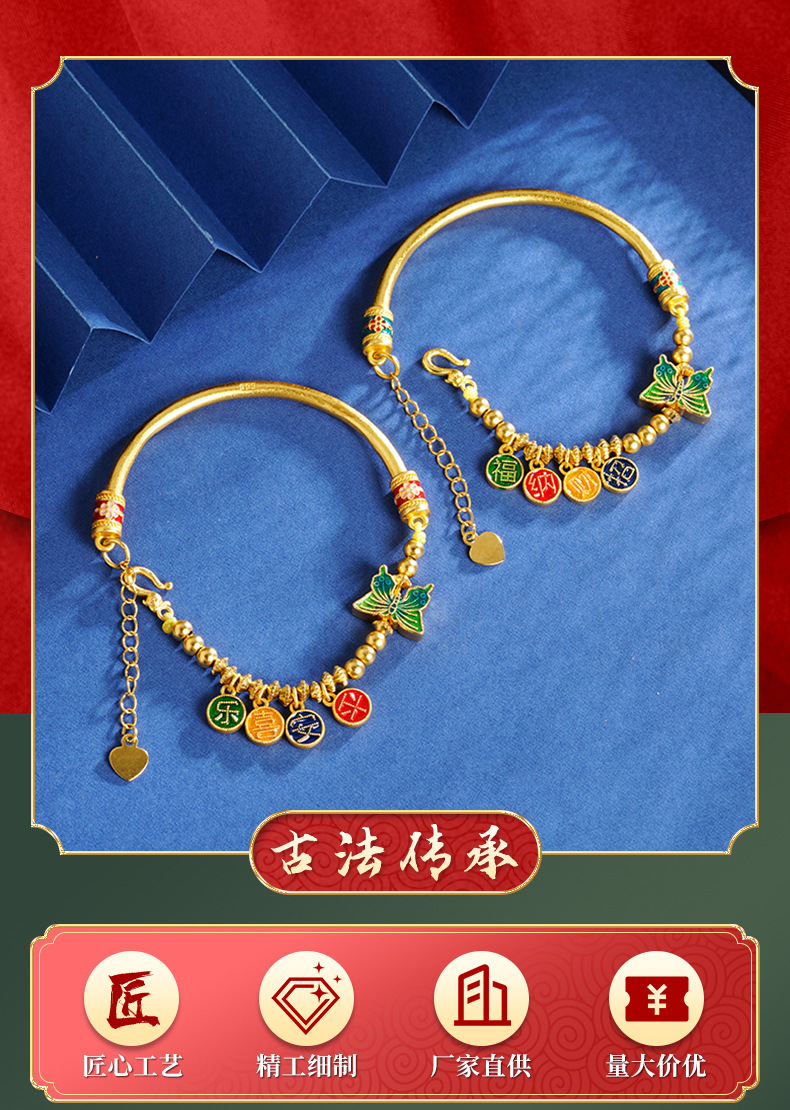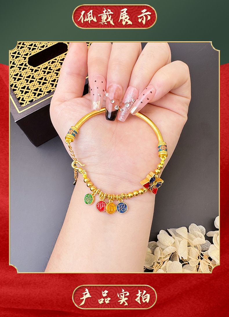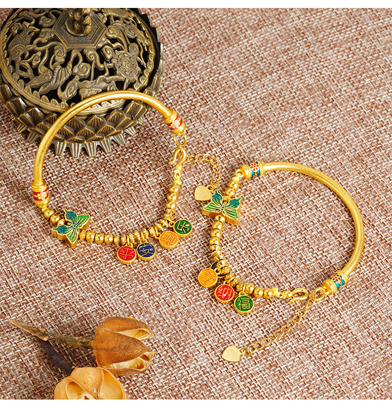 Nuevo color esmalte retro Ping An Joy Nafu medio brazalete cadena de cuentas suministro de joyería