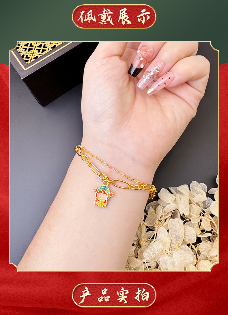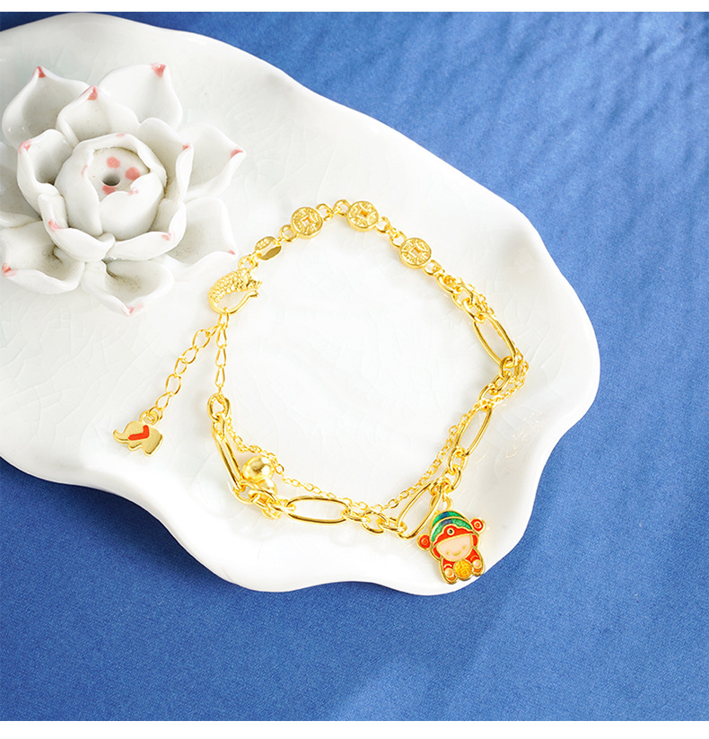 Nuevo oro de arena esmalte de color vietnamita pequeño dios de la fortuna monedas felicidad pulsera de calabaza mujer lujo ligero de alta calidad joyería fuente