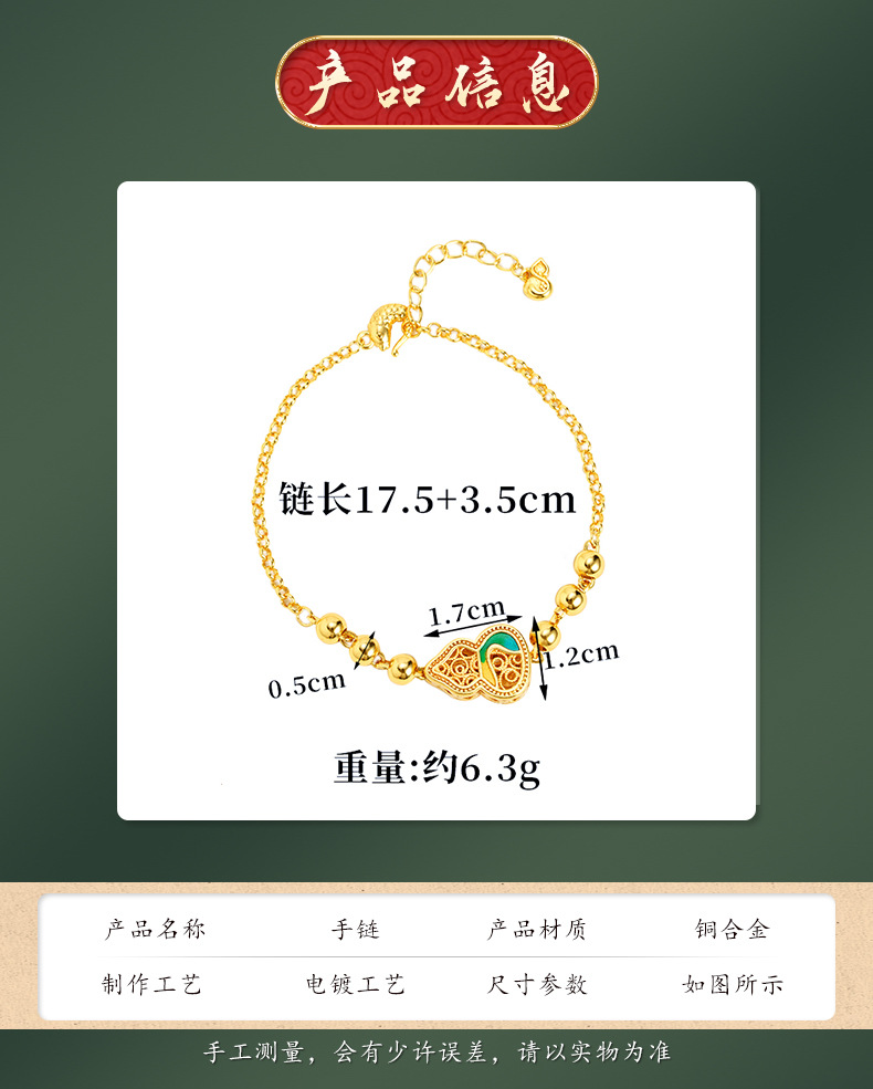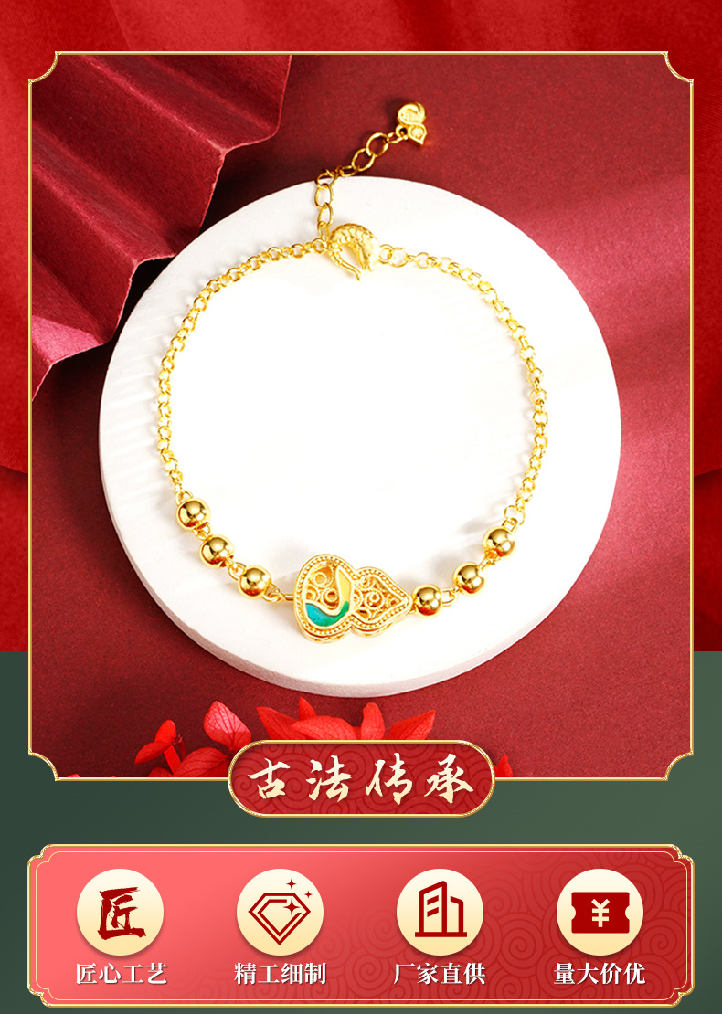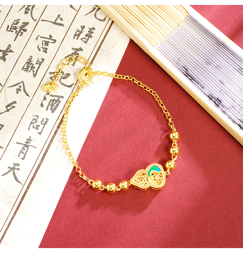 Nuevos productos vietnamitas oro de arena retro hueco filamento tres cuentas calabaza pulsera mujer lujo ligero de alta calidad joyas no se desvanecen