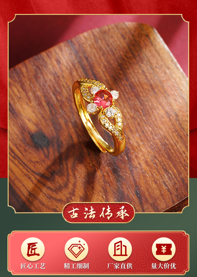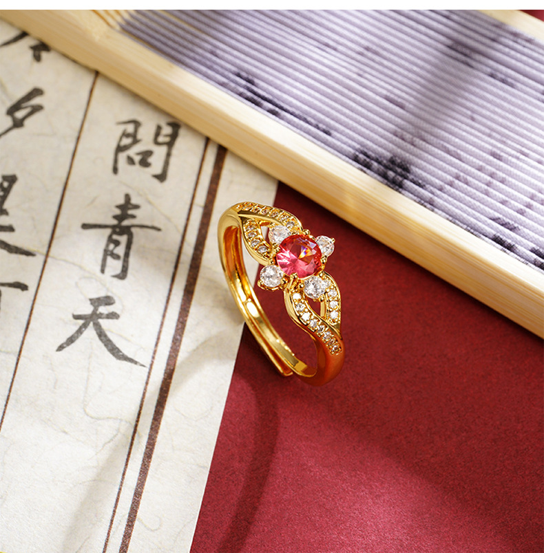 Nuevo estilo chino antiguo anillo de oro de arena vietnamita estilo palacio anillo de flores de lujo ligero para mujeres joyas de mano no desvanecidas