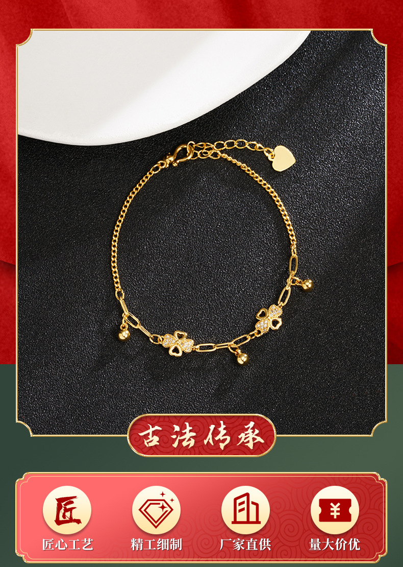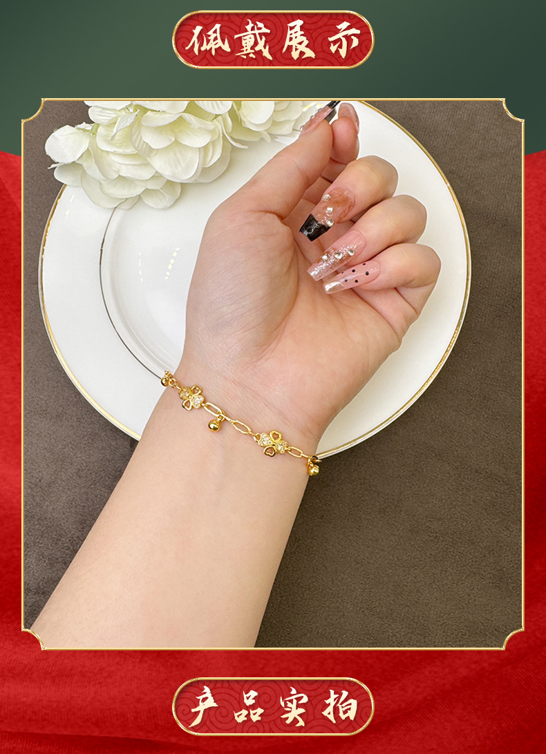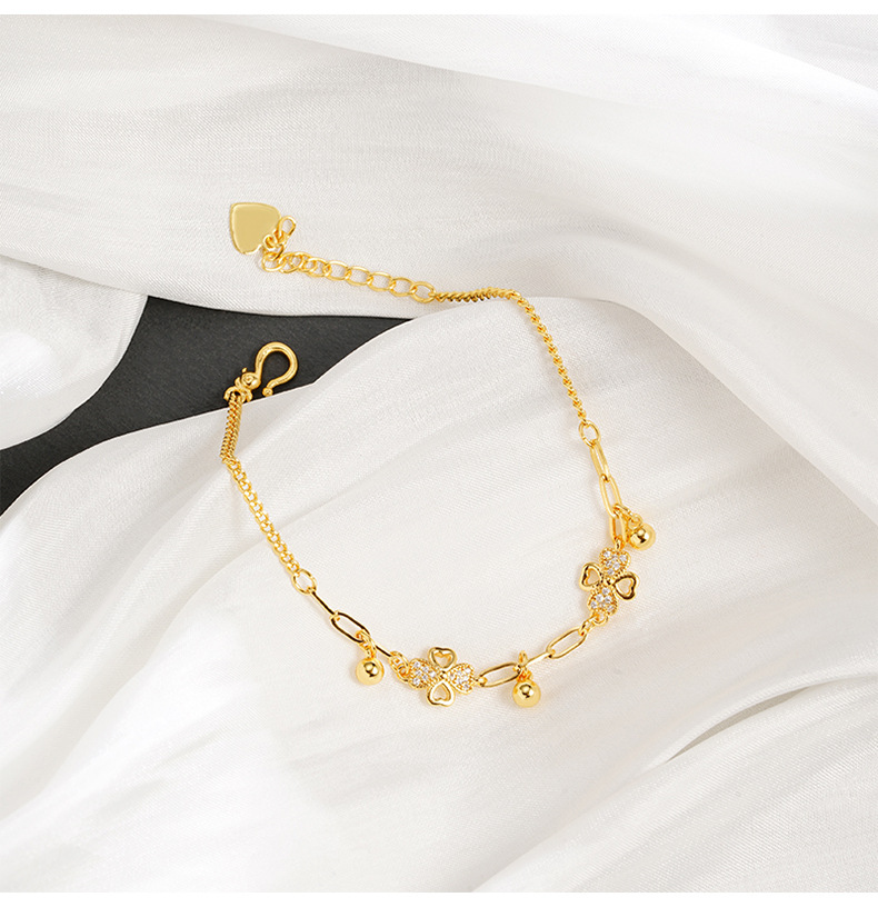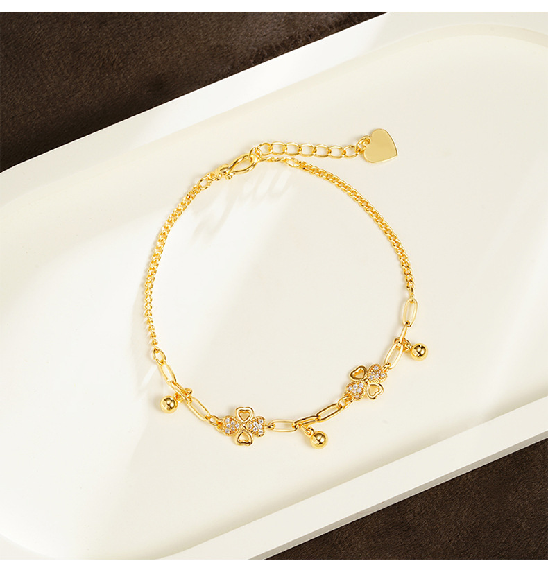 Brazalete de oro de arena vietnamita de lujo ligero con diamantes huecos de cuatro hojas de flores con bolas de rosca brazalete de nicho femenino de alta calidad joyas de mano