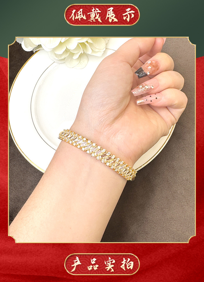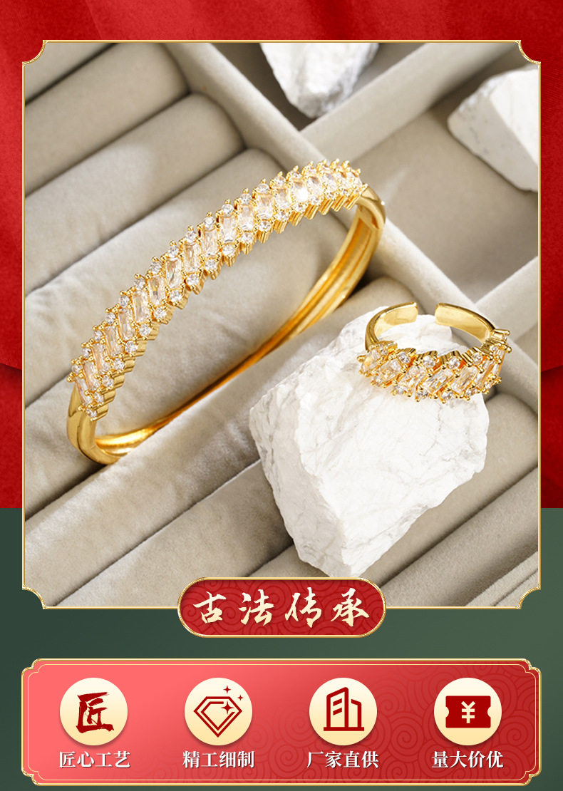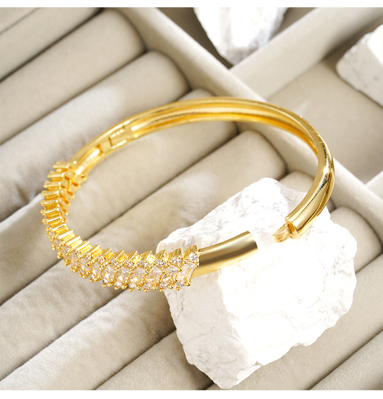Fronteriza Gufasha oro galvanizado pulsera de oro de 18 quilates ligera de lujo ligera imitación de diamantes anillo abierto joyas de nicho para mujeres