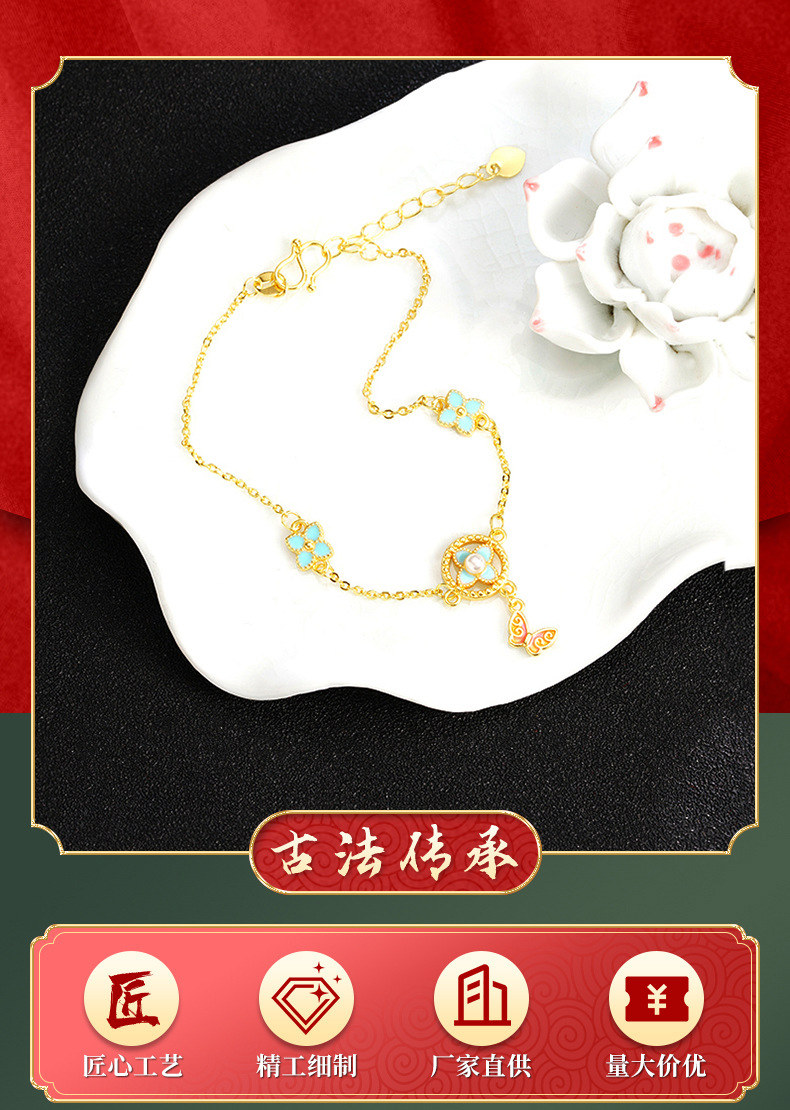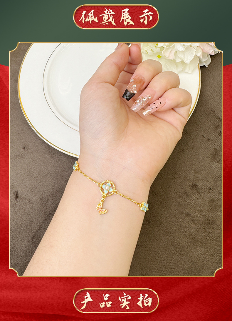 Viejo oro de oro de Vietnam dulce polifacético mariposa de cuatro hojas pulsera de flores para mujeres simple ligera de lujo estilo de alta calidad joyas de suministro