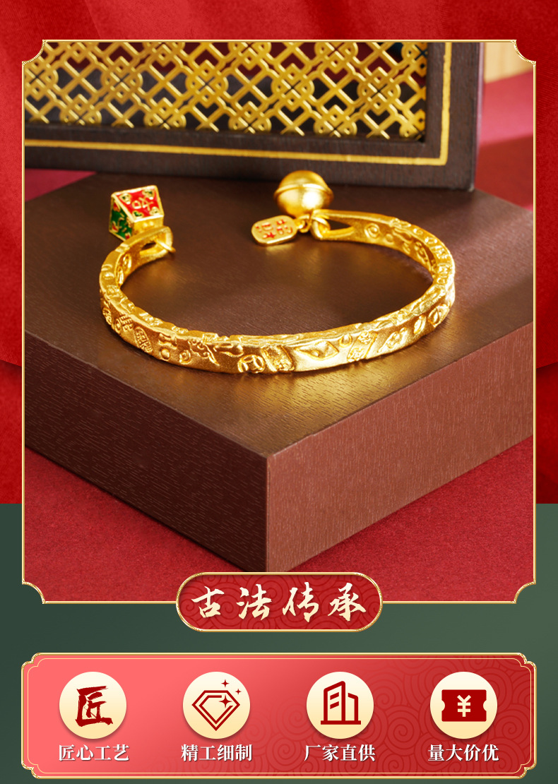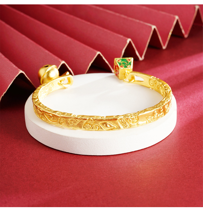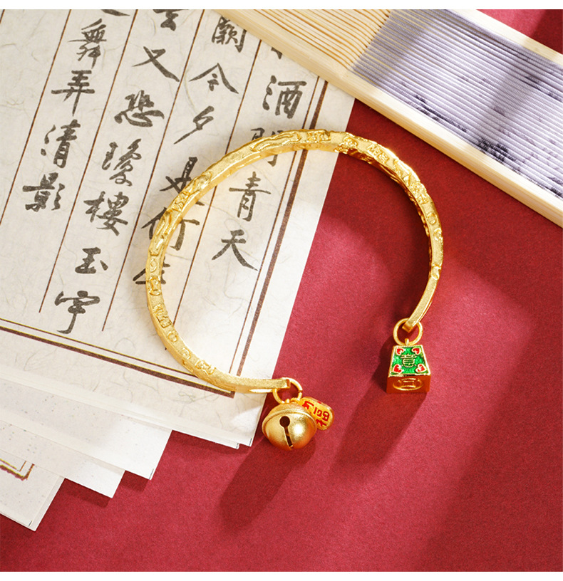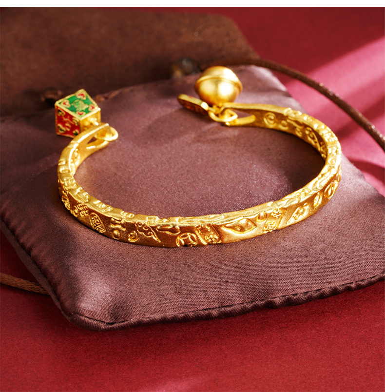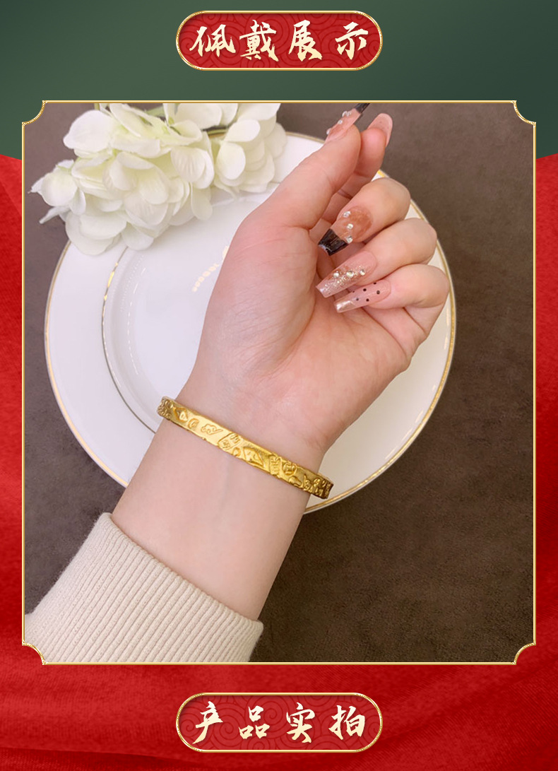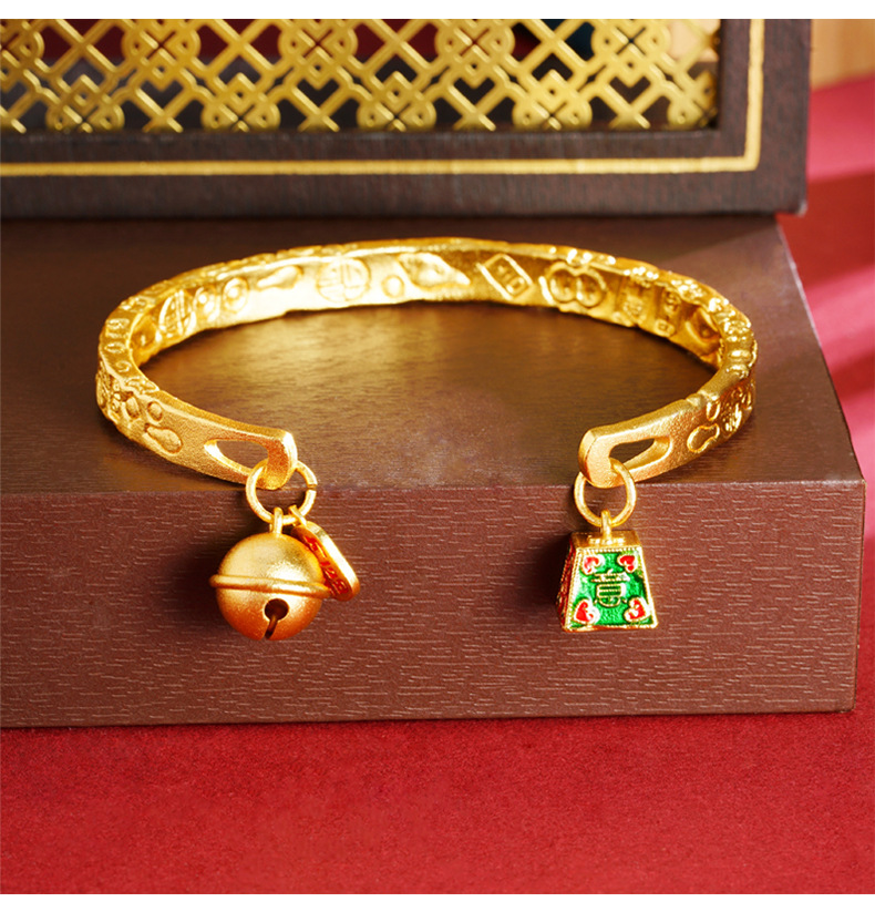 Guochao vietnamita pulsera de oro de arena antiguo tallado de la boca