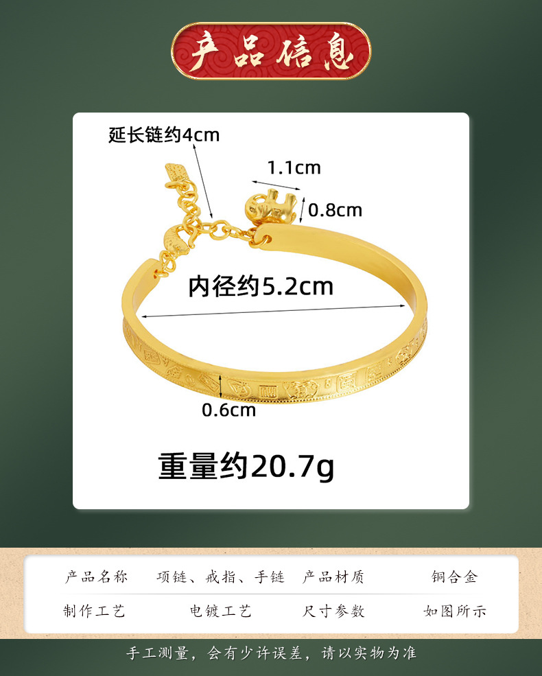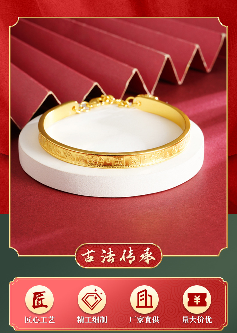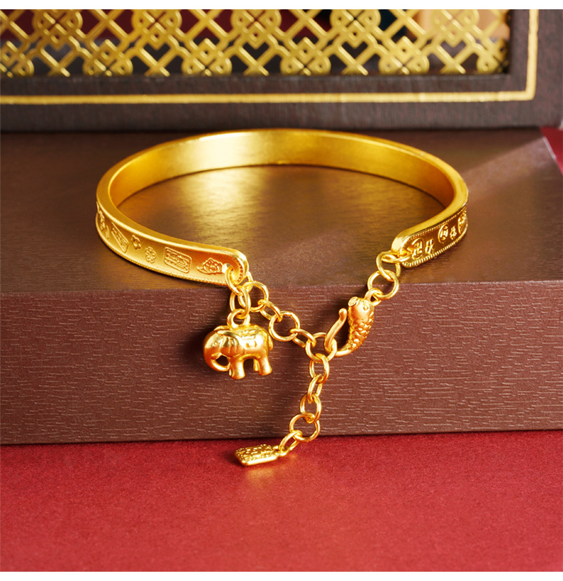 Nuevo estilo chino, brazalete de oro antiguo vietnamita, guochao jiyan manfu, elefante pequeño, brazalete de frillera, joyas de la corte