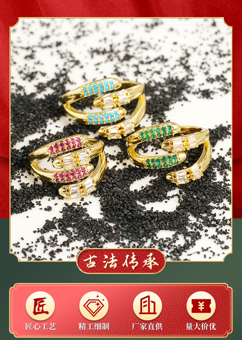 Anillo de oro de arena transfronterizo de mujeres chapadas en oro de 18 quilates nicho de estilo europeo y americano irregular joyas multicapa no se desvanecen joyas