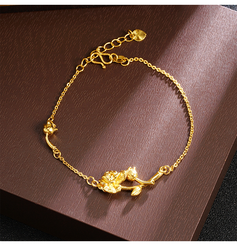 Antiguo oro vietnamita lujo ligero de lujo alto sentido romántico pulsera rosa simple para mujeres no se desvanece el suministro de joyas