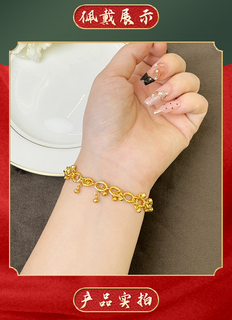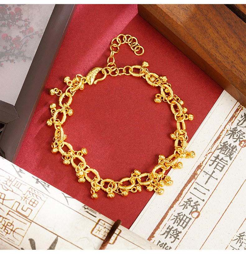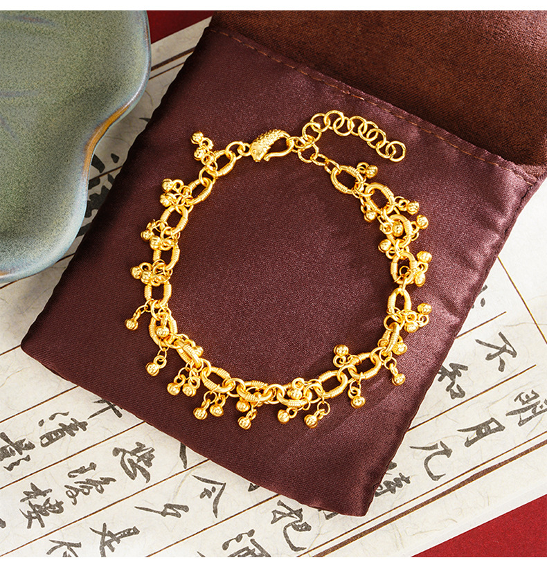Viejo oro de arena de moda lujosa ligera y frutífera, pulsera de tendencia nacional femenina, joyas que no se desvanecen durante mucho tiempo