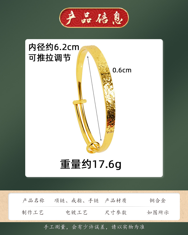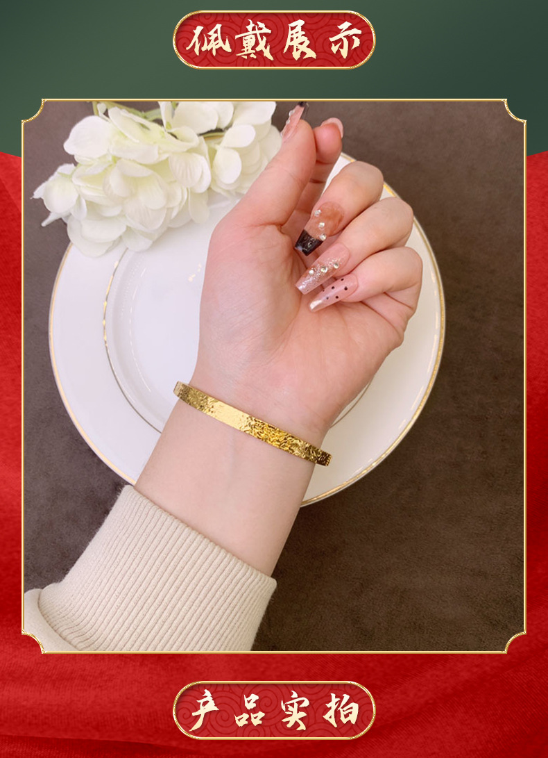 Nuevo estilo chino vietnamita antiguo brazalete de oro palacio viento ancho cara pulsera de hielo ligero lujo no se desvanece joyas