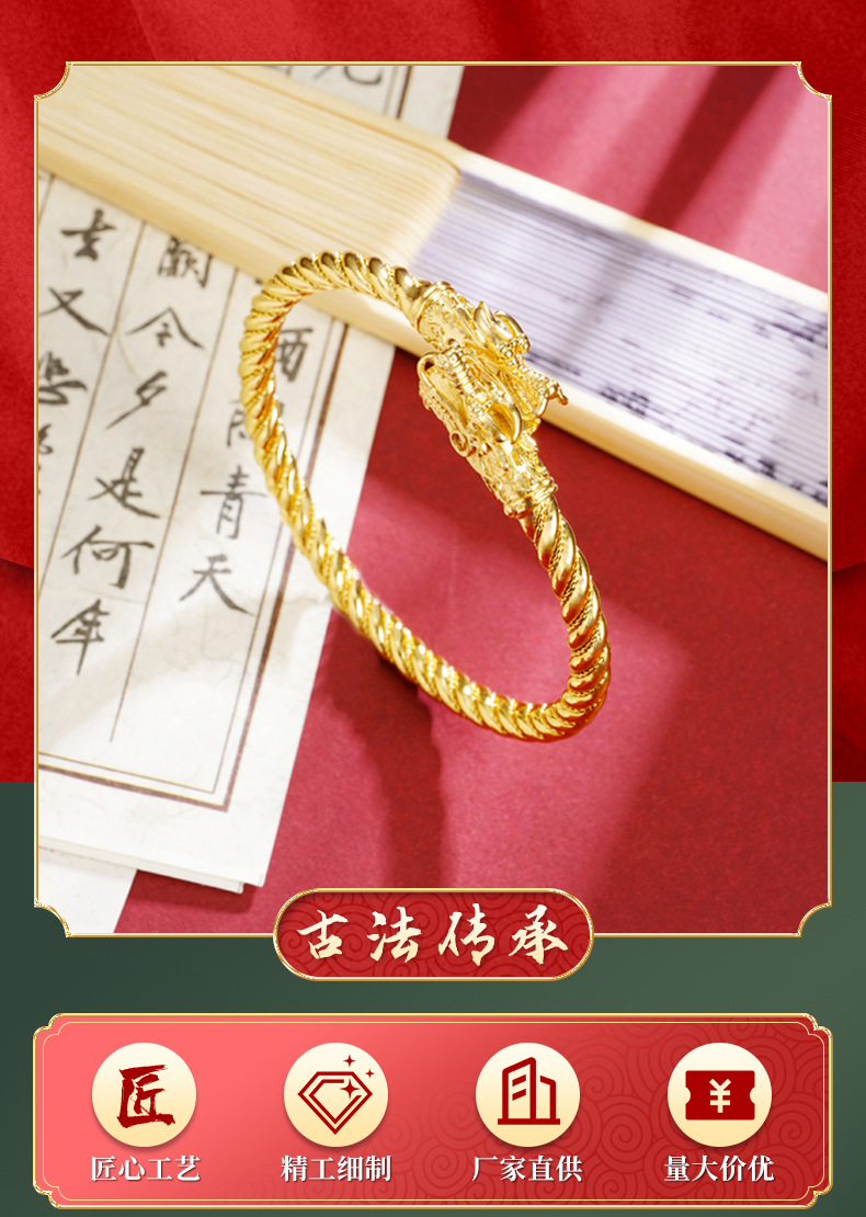 Nuevo estilo chino antiguo brazalete de oro Fasa, brazalete de tornillo abierto, estilo nacional de las mujeres, joyas de mano.