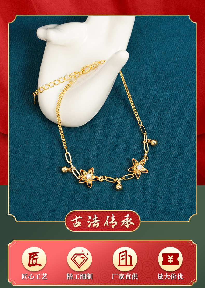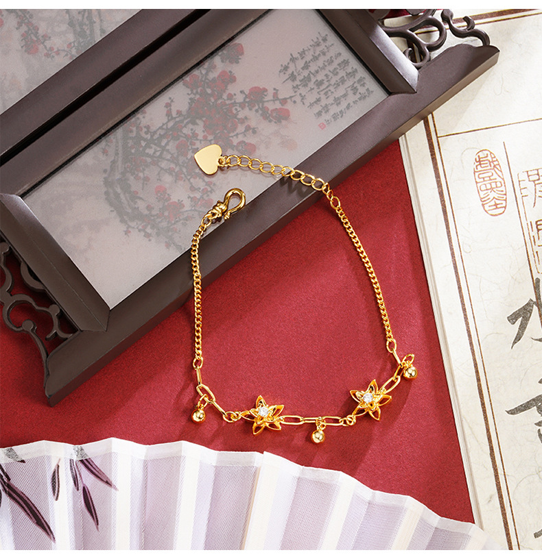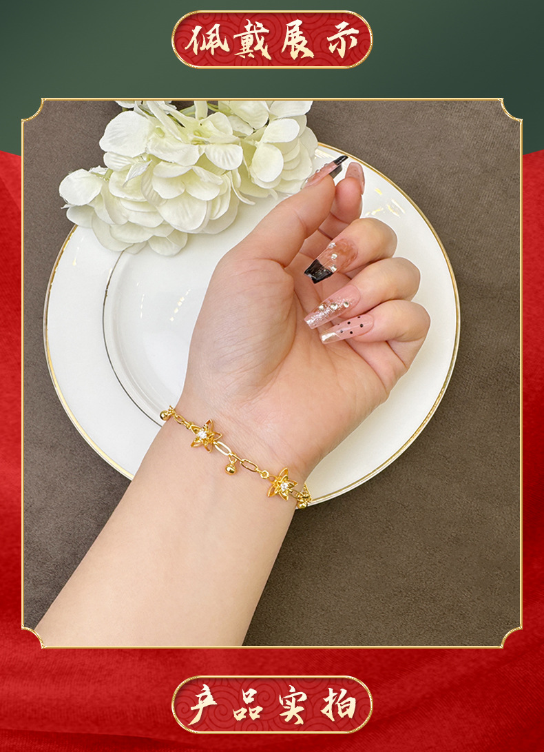 Nueva pulsera de oro antiguo estilo chino lujoso ligero de piedra hueca flor brazalete de joyería de mano de nicho femenino de alta calidad