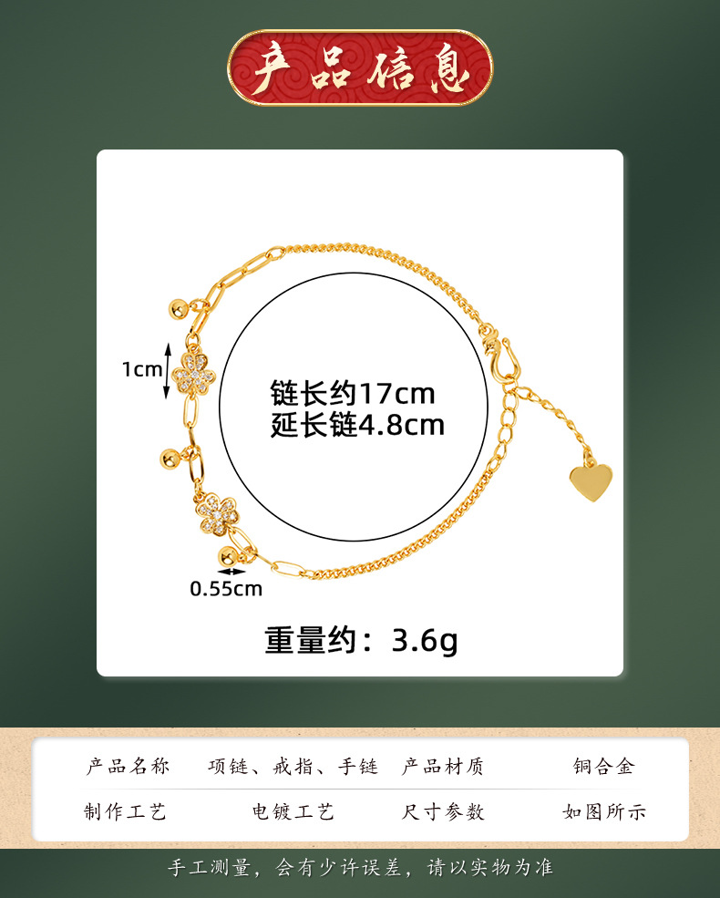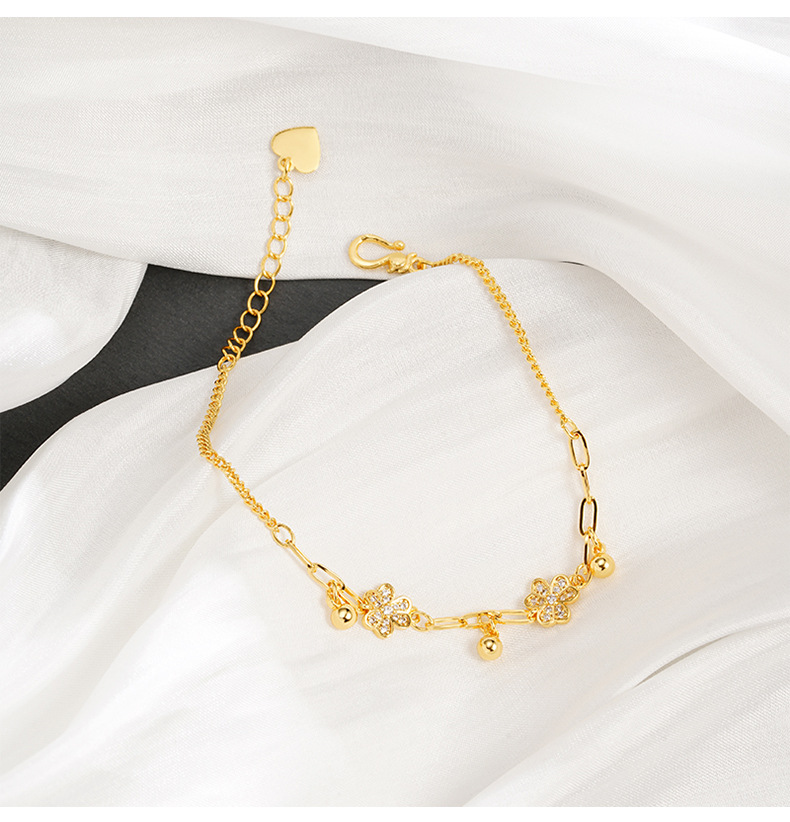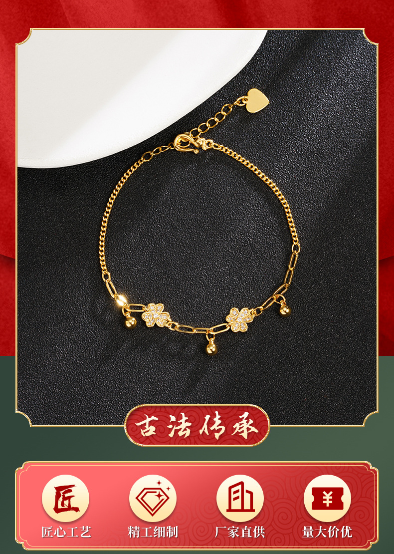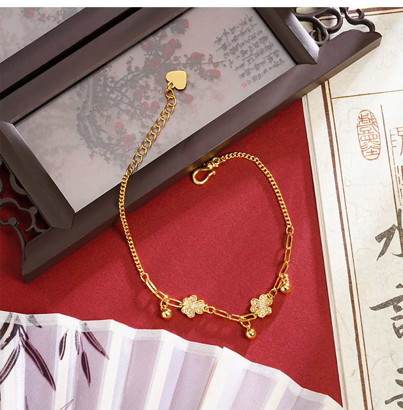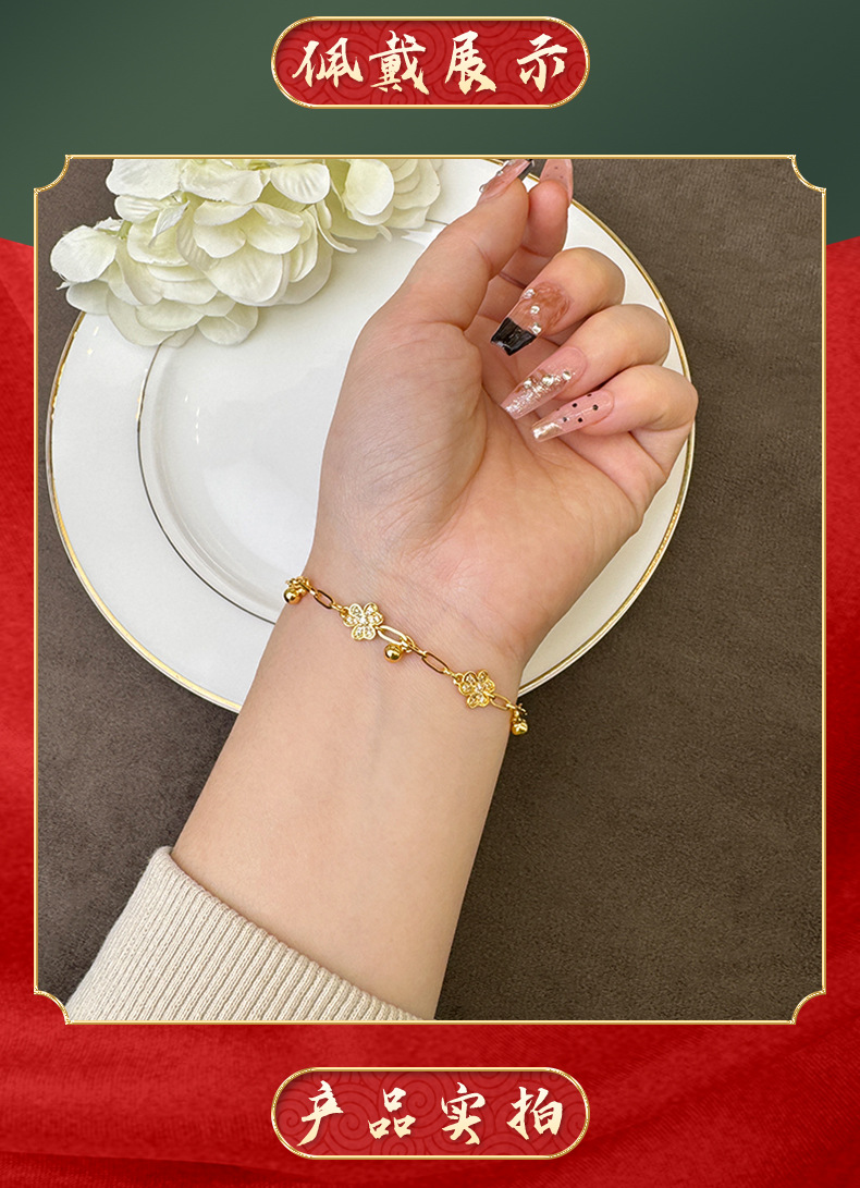 Brazalete de oro de arena vietnamita lujoso ligero trifoliante rosilla esfera brazalete para mujeres simple de alta calidad no se desvanece joyas de mano