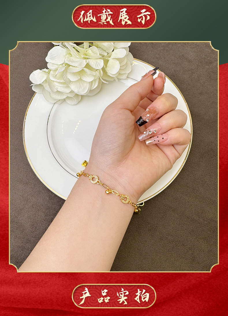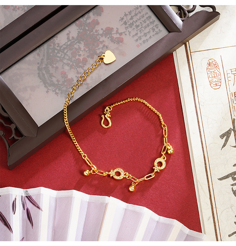 Nuevos productos de oro de arena vietnamita pulsera de lujo ligera con diamantes estrella de luna bolas de borda pulsera de nicho para mujeres joyas de mano de alta calidad